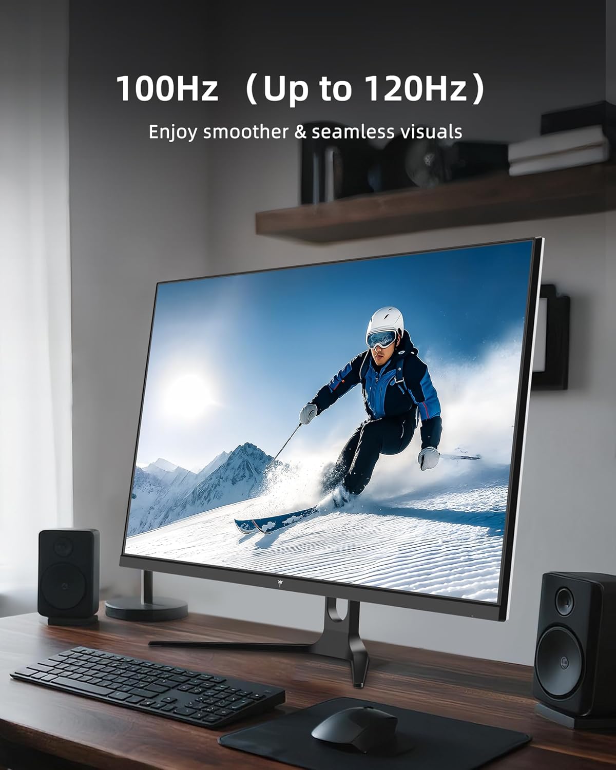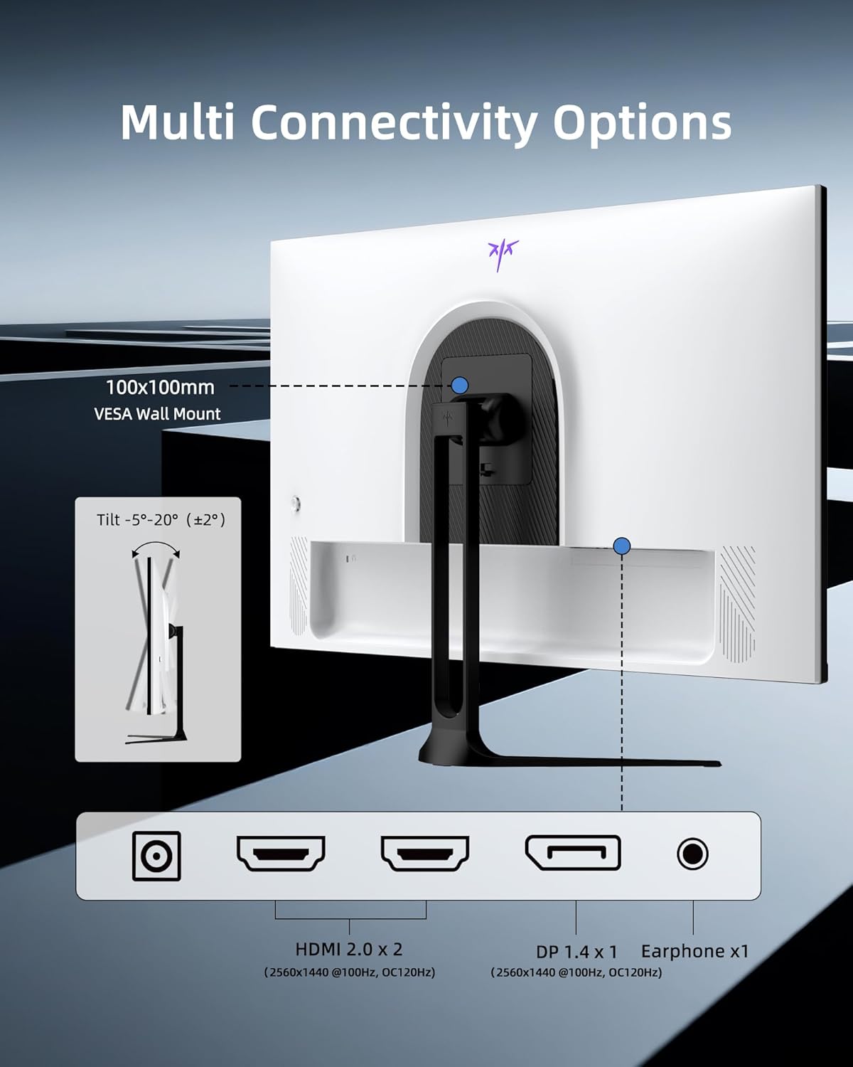 Flexible Connectivity: This monitor with displatport supports DP 1.4 *1 (up to 120Hz, originally 100Hz) & HDMI 2.0 *2 (up to 120Hz, originally 100Hz), enabling to connect external devices easily. VESA mount 100mm x 100mm.