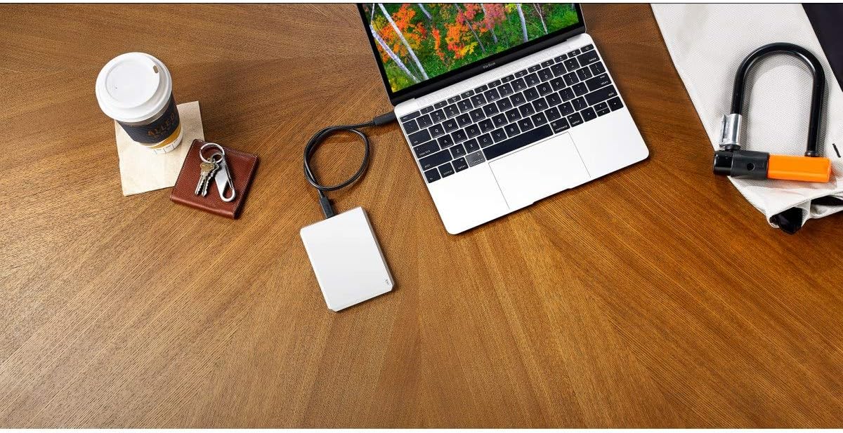 Portable external hard drive with high capacity for travel. Sleek, travel friendly design