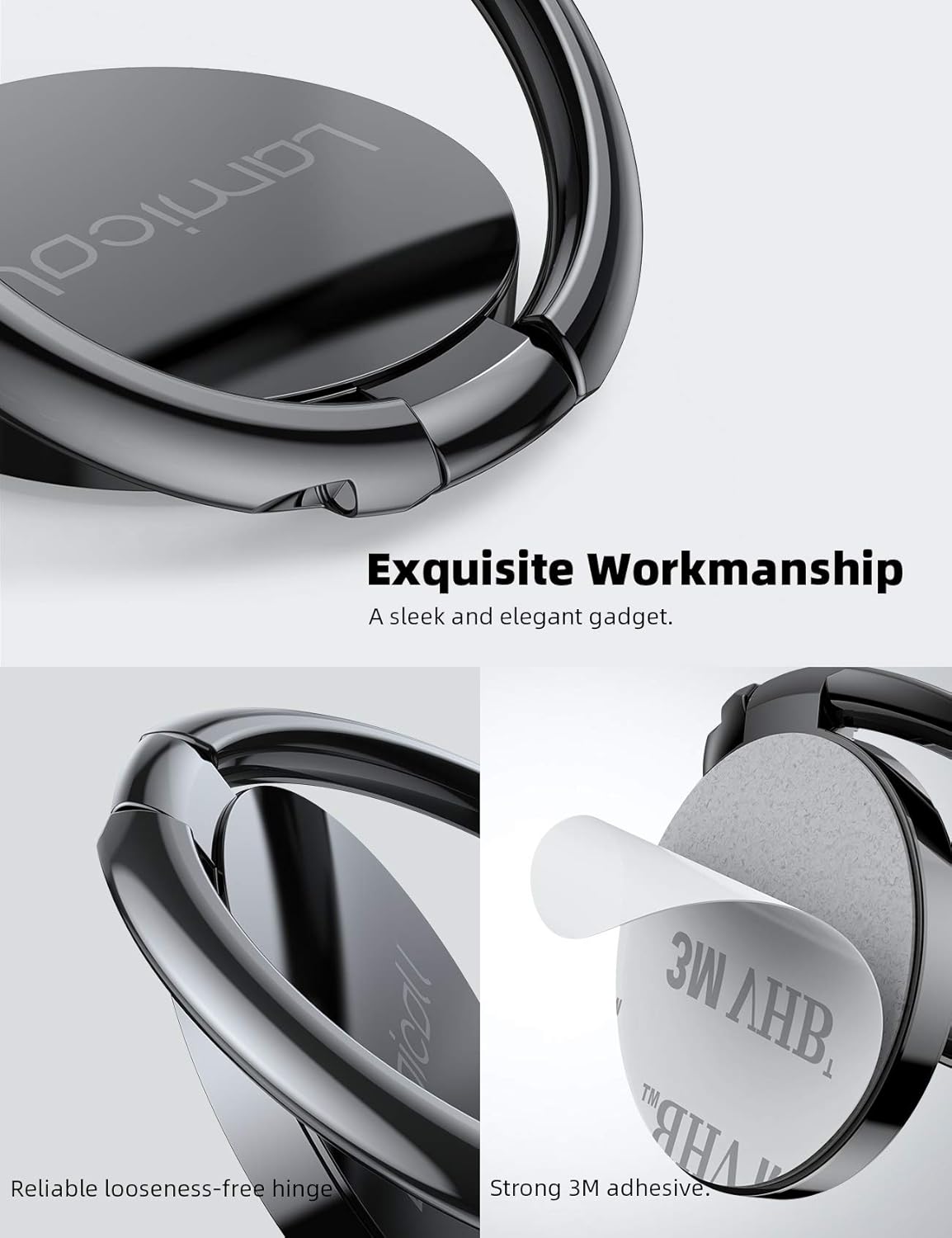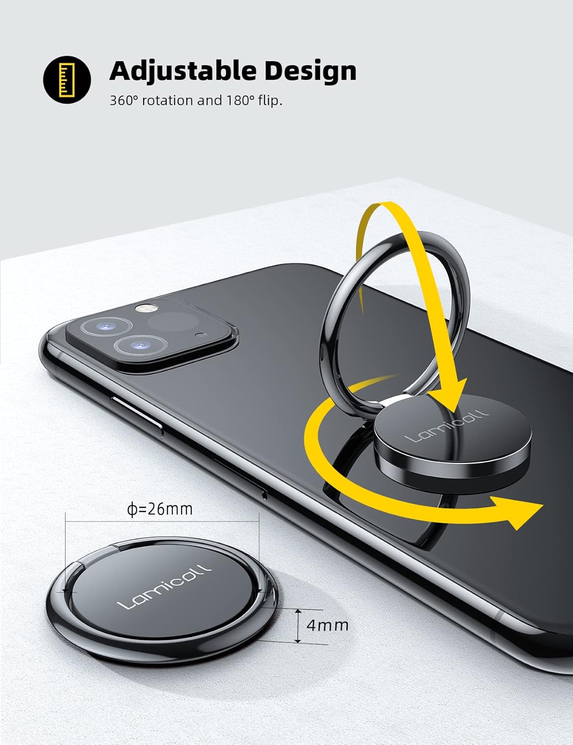Lamicall Cell Phone Ring Holder Stand – Phone Finger Gip Kickstand, 360° Rotation Polished Metal Grip for Magnetic Car Mount, Fit for iPhone 17/16/15/14 Pro Max Air, Android Smartphone Accessories
