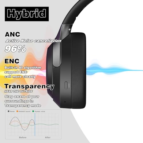 Hybrid Active Noise Cancellation: Block distractions with advanced hybrid ANC (feedforward + feedback microphones), eliminating 95% of ambient noise like traffic, airplane engines, or office chatter. Instantly switch to Transparency Mode to hear announcements or conversations without removing headphones