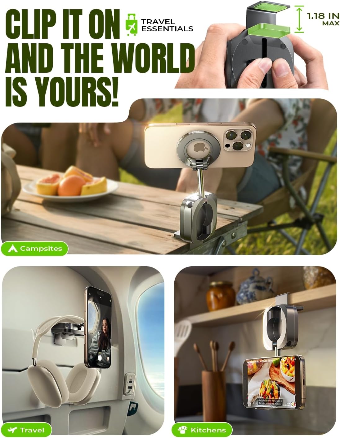 2026 Spring Break Essentials:The go-to for valentines day gifts/Christmas for Gifts for all travelers – men and women alike – and a New York Times 2025 “Top Tech Gifts” finalist. Lisen phone holder securely onto luggage handles, tray tables, desks, chairs, shelves, beds, books, or power banks, Can double as a compact selfie stick for recording vlog videos – Warm-Weather Must-Have for beach vacations and camping essentials