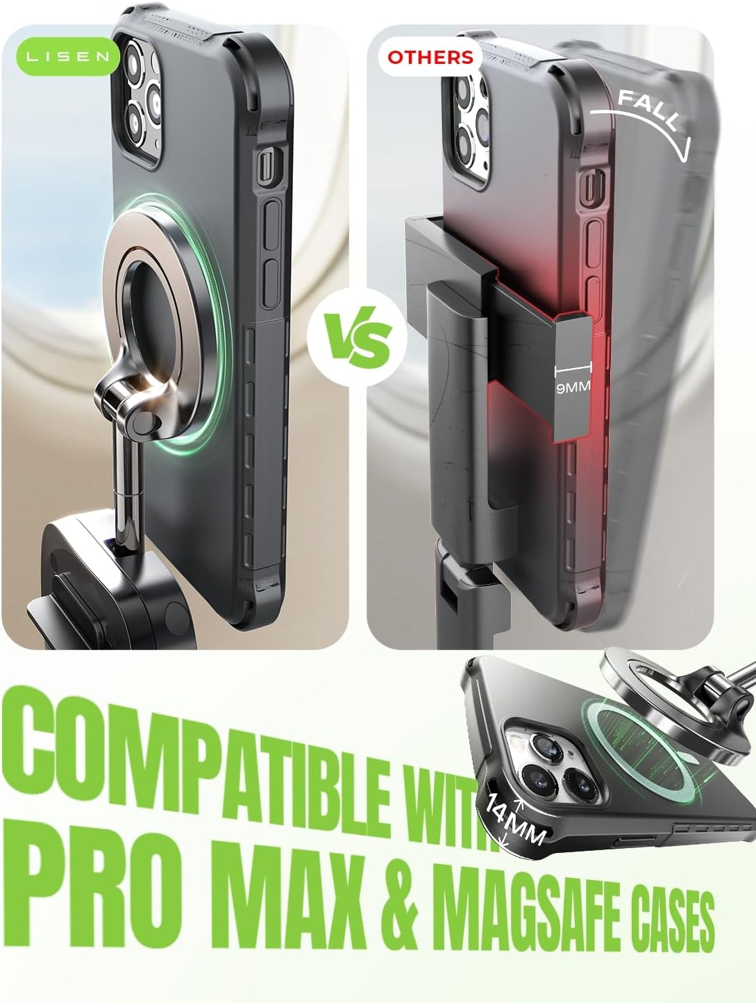 360° Flexible for MagSafe Travel Stand:The LISEN for MagSafe Airplane Phone Holder Mount locks your phone in 0.1 seconds, offering 360° rotation for perfect viewing angles. A TikTok Trend Items TOP10, loved by creators for video recording.