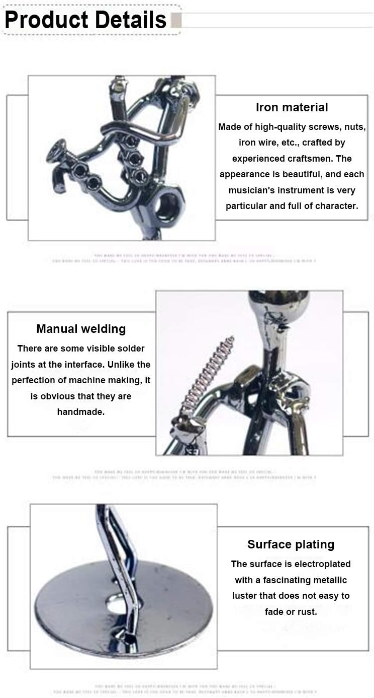 1. All of these musicians’ crafts are hand-welded with iron wire, nuts, beads and other metal materials, there are some visible solder joints at the interface, the hand-made feel is strong.