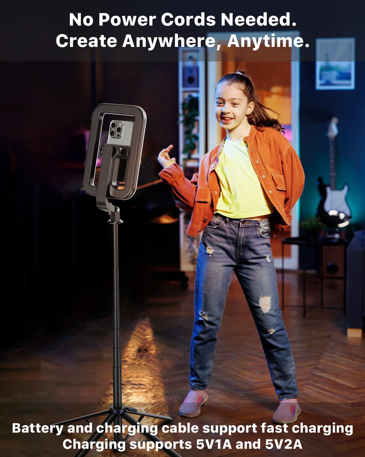 GLOW LIKE A STAR, ANYTIME, ANYWHERE – Illuminate your selfies, videos, and livestreams with pro-level lighting! With 3 color modes and 9 brightness settings, you’ll capture flawless, radiant shots in “any” environment. Ready to glow? Your perfect lighting is just a click away