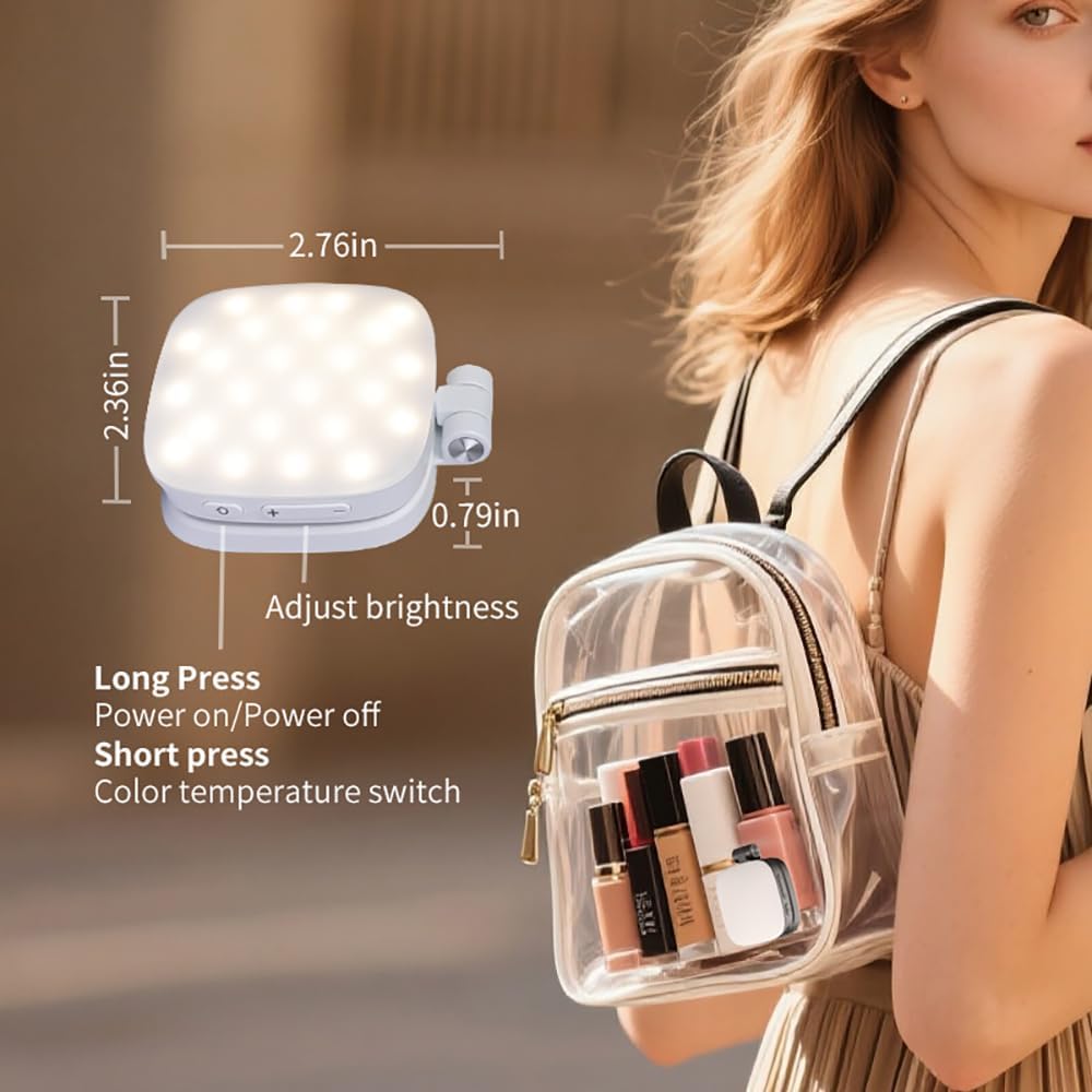 【Multi-Functional, Foldable & Lightweight Design】This ultra-compact Phone Fill Light folds down to a tiny size of 2.36in × 2.76in × 0.79in (60mm × 70mm × 20mm) and weighs only 3.39 oz (96g), making it incredibly portable and travel-friendly. But it’s more than just a light—this versatile phone accessory doubles as a phone stand, features a built-in makeup mirror, and serves as an ambient mood light, offering multiple functions in one sleek, foldable design.