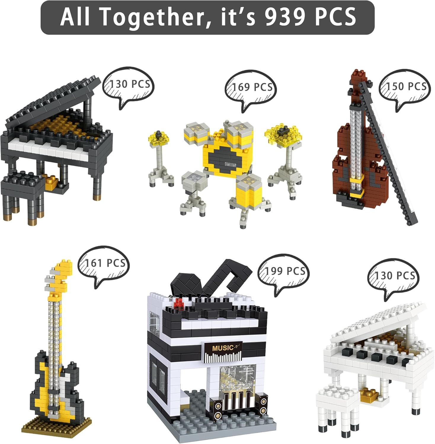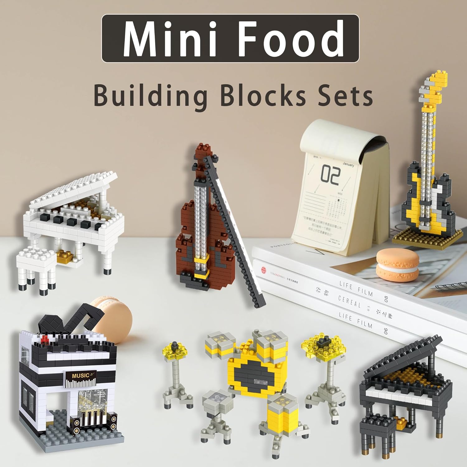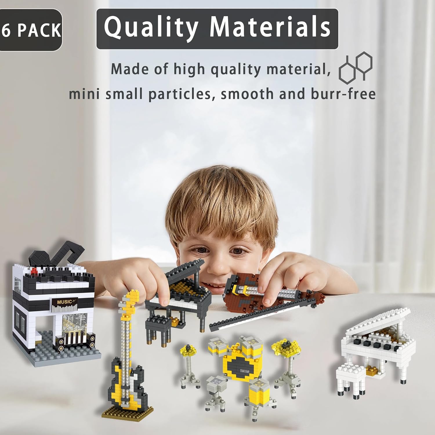 Micro Mini Building Blocks Sets for Kids Adult – 6 Packs Musical Instruments Micro Mini Blocks Bricks for Party Favors, Goodie Bags, Birthday Gifts, MusicRoom, Electric Bass, Drum, Violin, Grand Piano