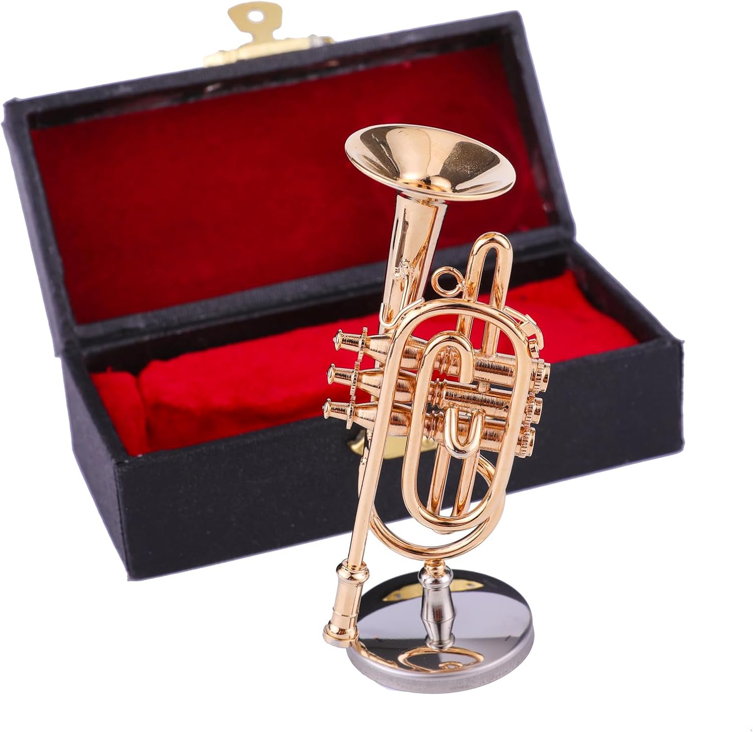 About Size: The size of miniature cornet is 3.54″x1.57″. With red velvet lined musical instrument case, to keep and save this cornet replica