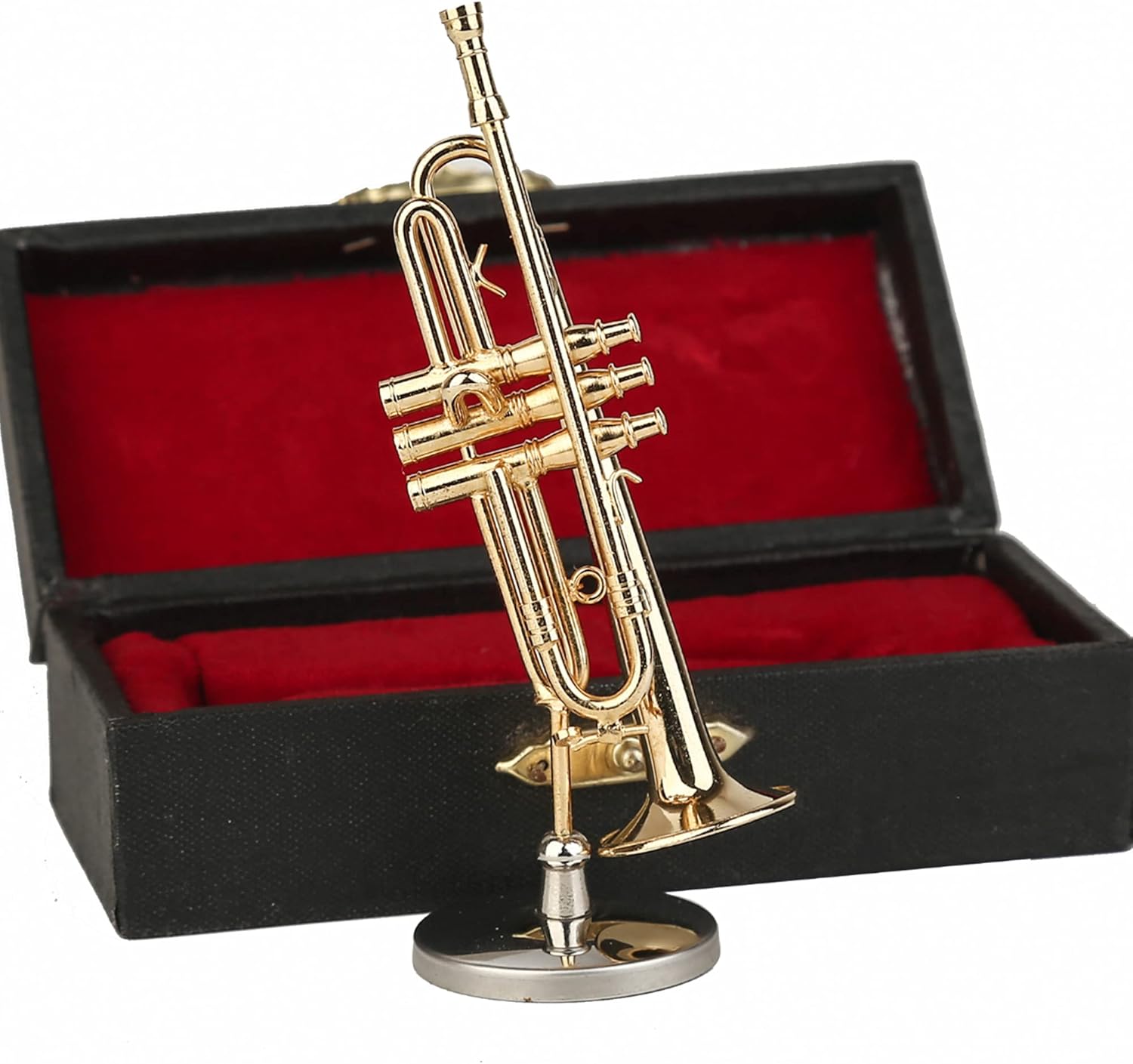 About Size: The size of miniature trumpet is 3.46″x0.91″. With red velvet lined musical instrument case, to keep and save this trumpet replica