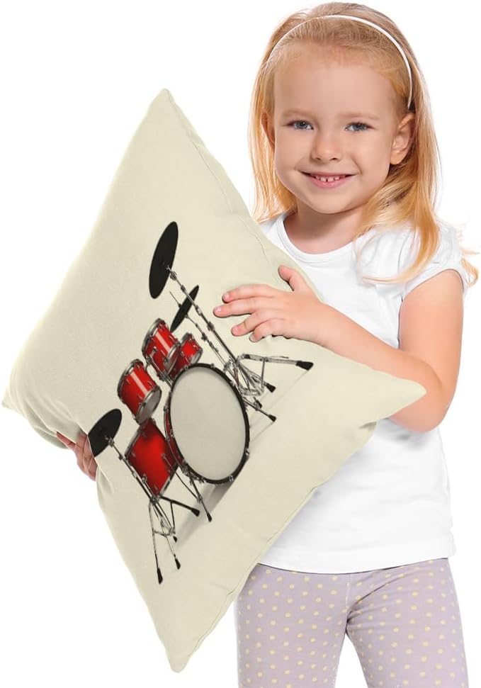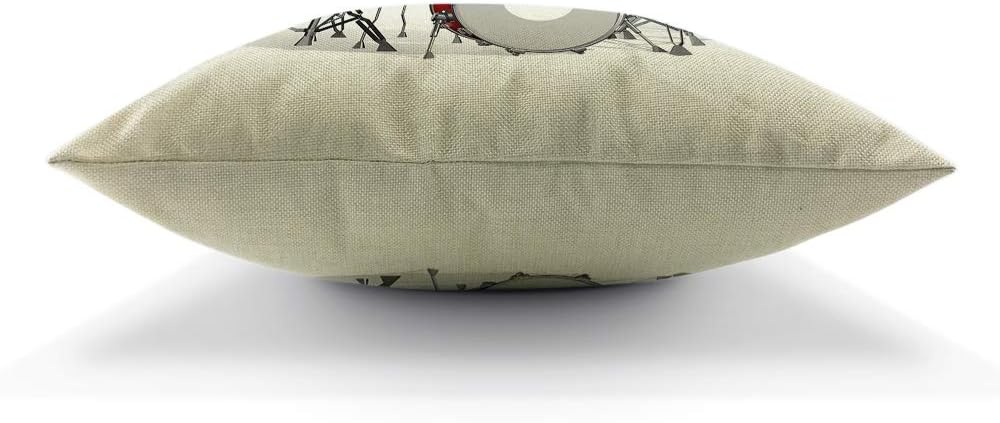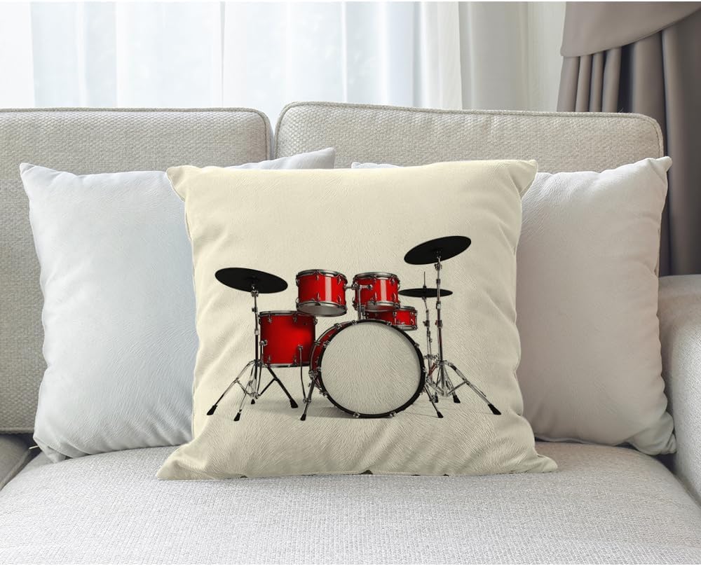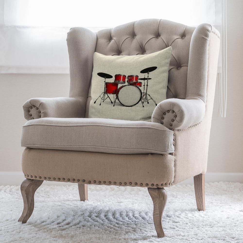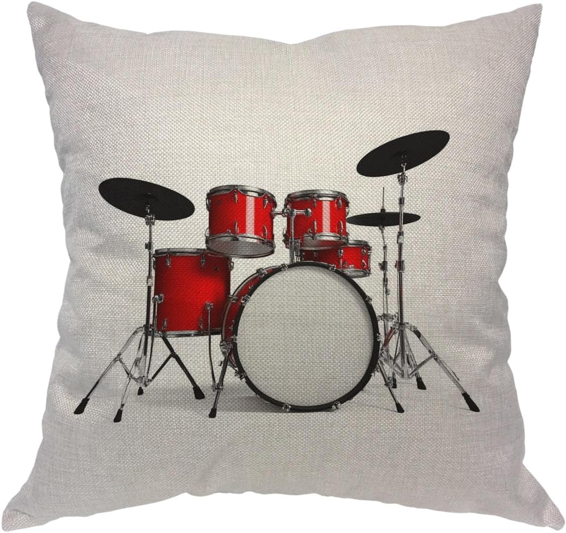 Music Pillows Rock N Roll Jazz Musical Instrument Drum Set for Show Concert Party Throw Pillow Cover Decorative Square Accent Cotton Linen Home Cushion Pillow Case 18X18 Inch Red Silver White