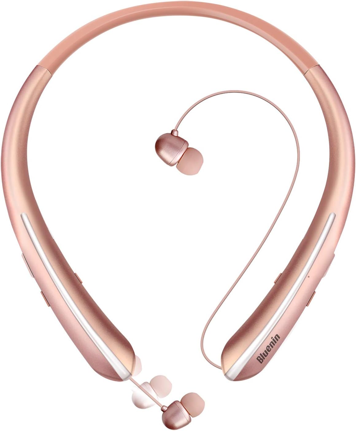 【Retractable Earbuds & Portable Design】Auto retractable earbuds allows you to pull the retractable wire to the length you want and press the retract button can store the earbuds wire automatically. No more worry about tangling or messy. Protects the neckband headset from damaging and losing, very convenient and safe.
