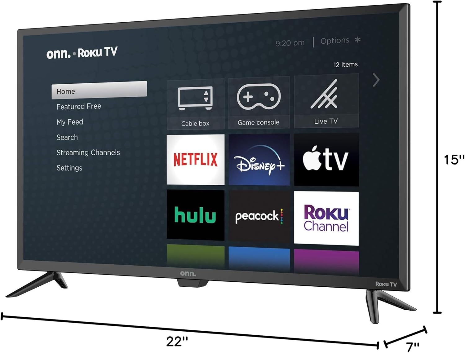 Binge on movies and TV episodes, news, sports, music and more! We insisted on 720p High Definition for this 24” LED TV, bringing out more lifelike color, texture and detail. We also partnered with Roku to bring you the best possible content with thousands of channels to choose from, conveniently presented through your own customizable home screen. Watch via cable, satellite, HDTV antenna or just start streaming from your favorite app. Like the sound of your own voice You can actually use it with the Roku mobile app to search for the title, artist, actor or director, or just go old-school with our handy remote. We handle all software updates too, automatically, so all you have to worry about is what to watch. Lose yourself in the ultimate viewing experience. Watch onn. with our onn. 24” Class 720P HD LED Roku Smart TV.