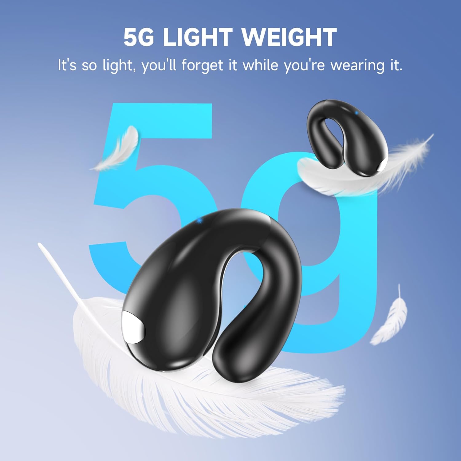 [5g Ultra Lightweight and Open Design] Each open earphones is only 5g light weight, and the rear end of the earbuds is made of soft silicone, adopts to adjustable ear clip design, which can provide quite comfortable and anti-slip wearing for all day. VNMN open ear clip on earbuds are perfectly fit for activities like running, cycling, fitness, yoga, hiking, traveling, ect.