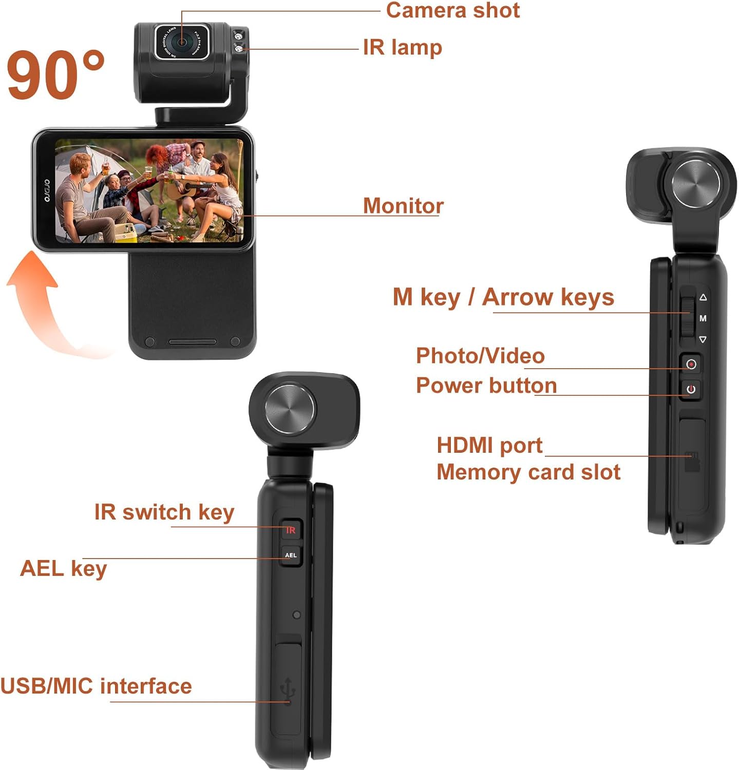 【3.5-inch 180-degree Rotating Large Screen】The ordro M3 handheld camera support Horizontal and vertical shooting modes can be freely selected to meet the needs of various scenes, yoga/travel/conference/food production/camping/parent-child/dinner /Vlog shooting.