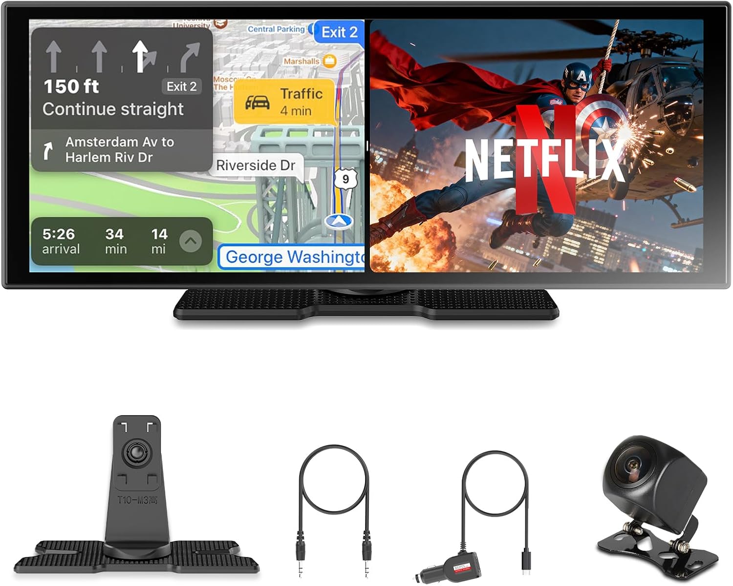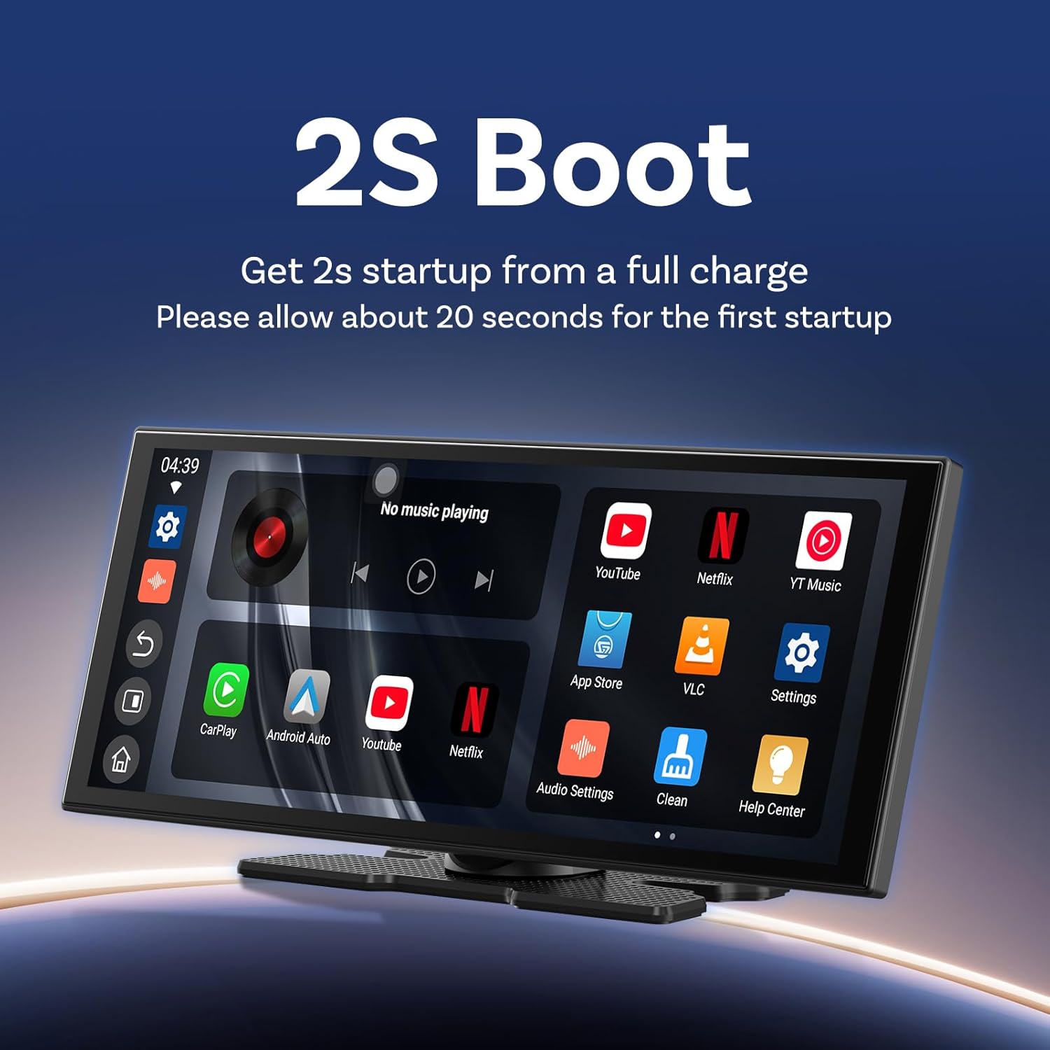 ⚡ 【Instant 2-Second Startup】Get ready to drive in just 2 seconds with rapid boot technology when fully charged (first-time setup requires about 20 seconds). Spend less time waiting and more time enjoying seamless access to CarPlay, Android Auto, YouTube, Netflix and all your favorite apps.