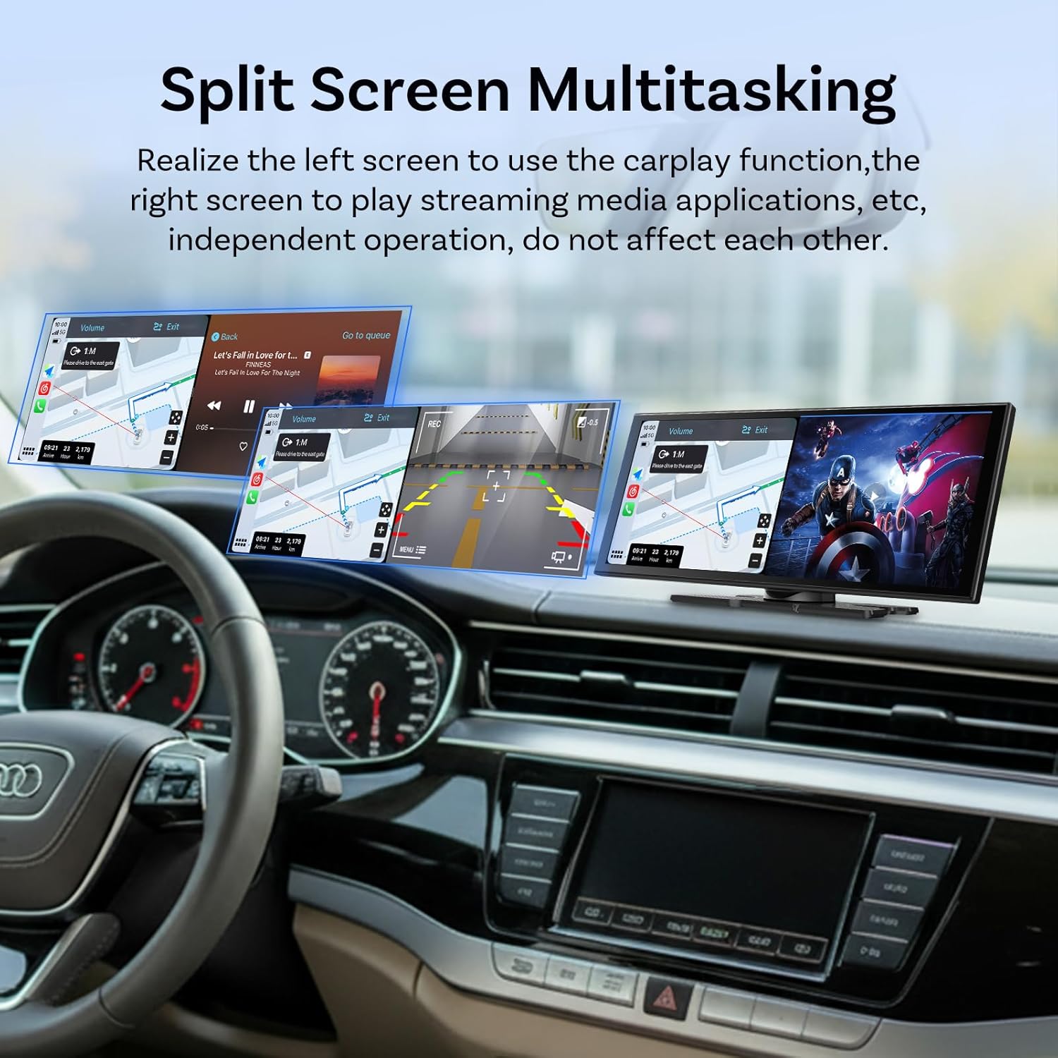 📺【Split-Screen Multitasking Functionality】Enhance your driving experience with innovative split-screen capability that lets you operate CarPlay navigation on the left side while simultaneously controlling streaming media apps on the right. Both sides function independently without interfering with each other, allowing you to navigate and enjoy entertainment seamlessly.
