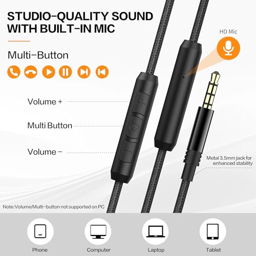 3.5mm Gold-Plated Jack & Enhanced Stability : These wired 3.5mm headphones feature a 3.5mm gold-plated audio jack that delivers more stable connectivity than traditional connectors, ensuring seamless compatibility with smartphones, tablets, laptops, Chromebooks, and more. Whether you’re working, studying, or commuting, enjoy high-fidelity sound wherever you go