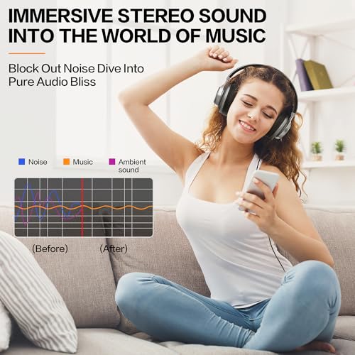 Enjoy Exceptional Sound Quality: Equipped with a powerful 40mm DLC dynamic driver, these Plug in headphones deliver deep, punchy bass, sparkling highs, and balanced mids—immersing you in a premium, distraction-free audio experience. With an additional noise-isolating pad, it offers superior noise cancellation compared to regular headphones,which enhance your focus during listening
