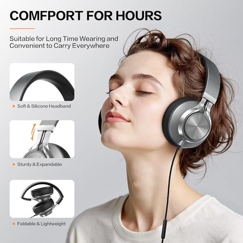 Engineered for All-day Comfort: These wired headphones with cord features premium protein leather and breathless mesh for a plush, cloud-like feel. The advanced ultra-light TPU headband, designed with ergonomic suspension, evenly distributes weight for effortless, all-day comfort—suitable for Teen and Adults. Special for immersive, fatigue-free listening experiences (Warm Tips:Select the perfect size according to your head shape for a proper fit.)