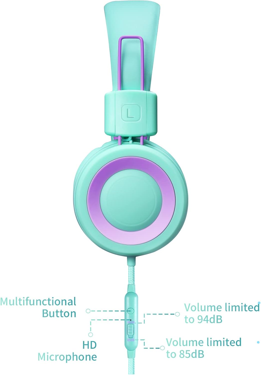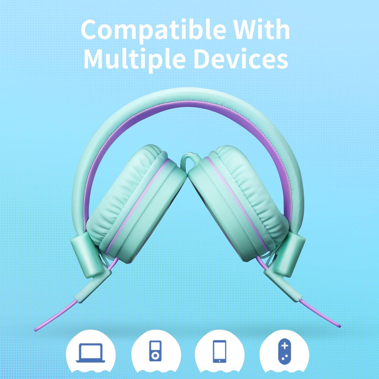 foldable and Compact design can make it easy to storage in backpack or suitcases. Carry the convenient kids headphones around without burden to learn, listen music and have fun, no matter in school or travel.