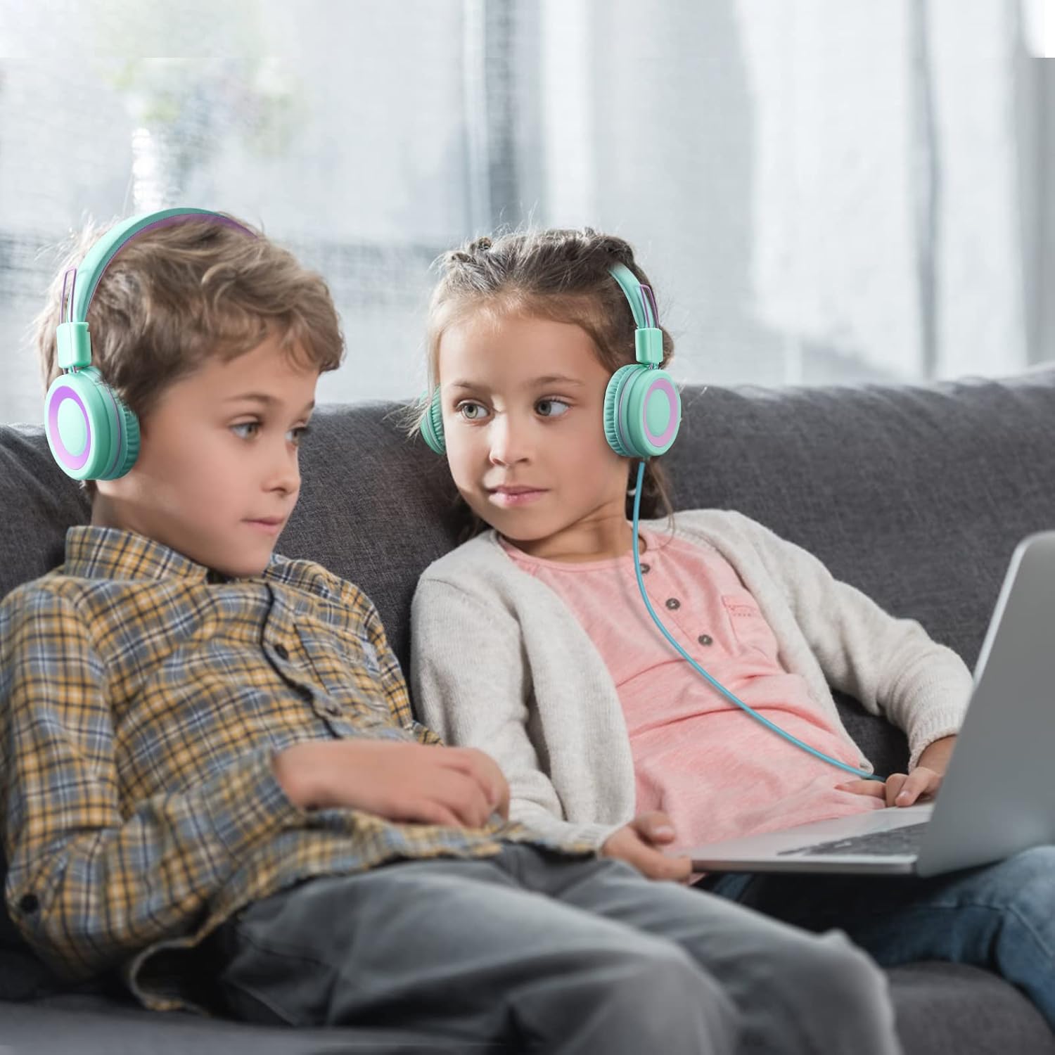 [Hi-fi stereo sound&Built in microphone ]: Stereo kids headphones with excellent sound effect, the best choice for your children to study, listen to music, watch movie, play game, talk with friends and have fun, no matter at home, in school or travel. Built-in microphone is convenient for kids’ on-line learning and communication at home.