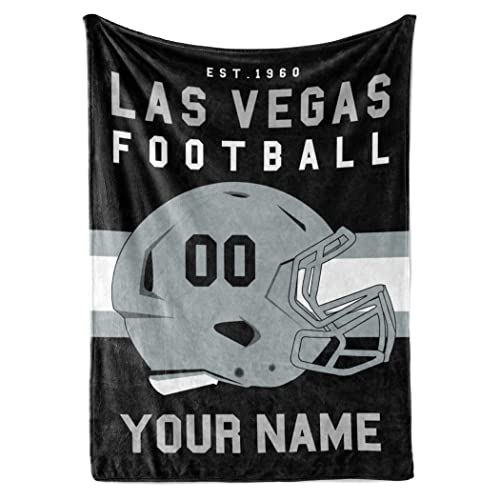 Personalized Football Throw Blanket for Kids and Adults | Warm and Soft Plush | American Football Custom Fan Gift with Helmet Number, Name, City, and Team Colors (50×60 Fleece – Las Vegas)