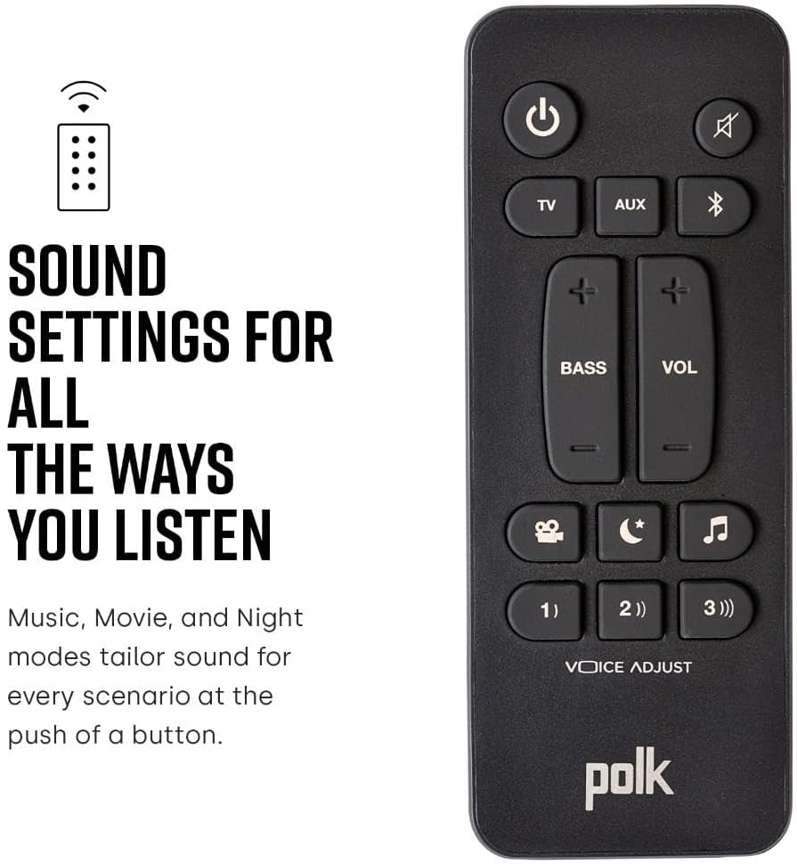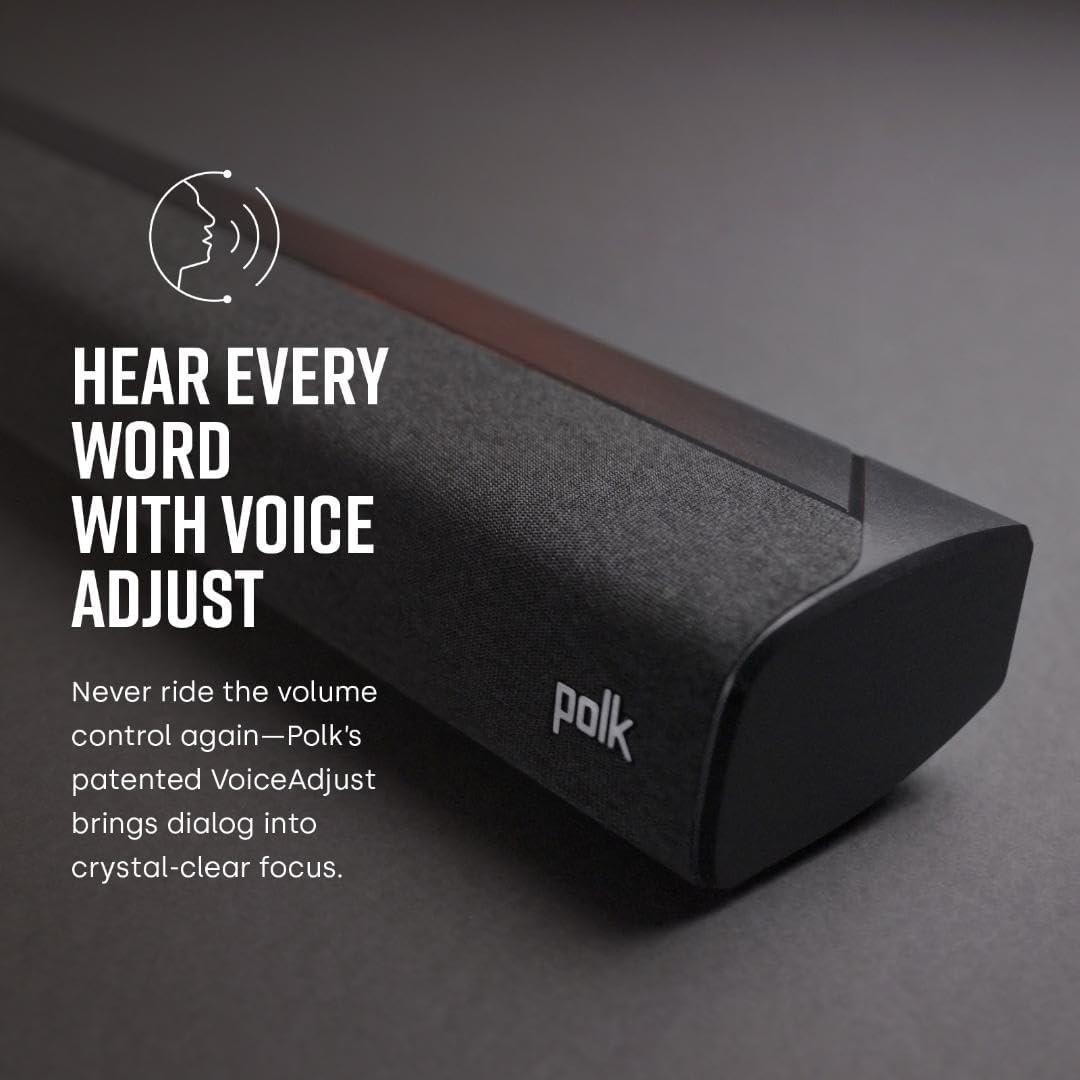 POLK’S EXCLUSIVE VOICE ADJUST TECHNOLOGY & Dolby Digital 5.1 decoding help maximize sound clarity and reduce voice delays in this soundbar for TV with subwoofer; hear clear, crisp dialogue from movies, TV shows & sports with three distinct settings