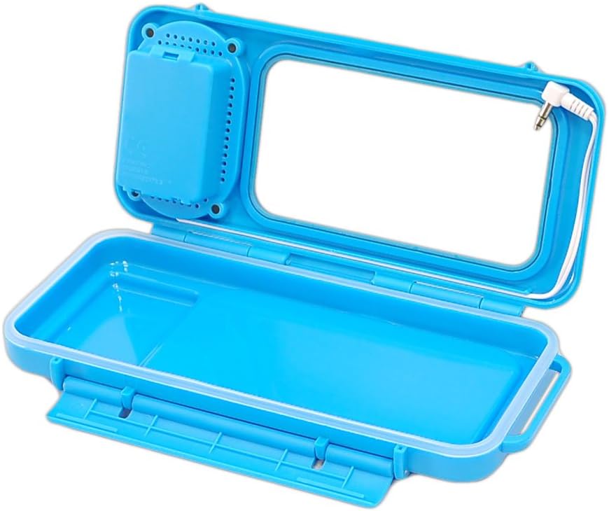 The Surf Sound Waterproof Speaker Case is the must have accessory for the pool party, at the beach or in the shower’ The waterproof housing is designed to enhance your smartphone and MP3 player experience. It works with any device that fit inside – Internal dimensions (W x H x D): 2.4-Inch x 4.56-Inch x .43-Inch -It even fits your iPods and iPhones. Just insert your device, connect the 3.5mm cable and listen to your favorite music in damp, humid, wet and dusty environments safely without causing damage to your device. The front screen is constructed of soft panel engineered plastics to allow touch screen ability while your device is secured inside -you’ll be able to change between tracks and even send text messages while it’s inside’ Requires 3 ‘AAA’ batteries (not included).