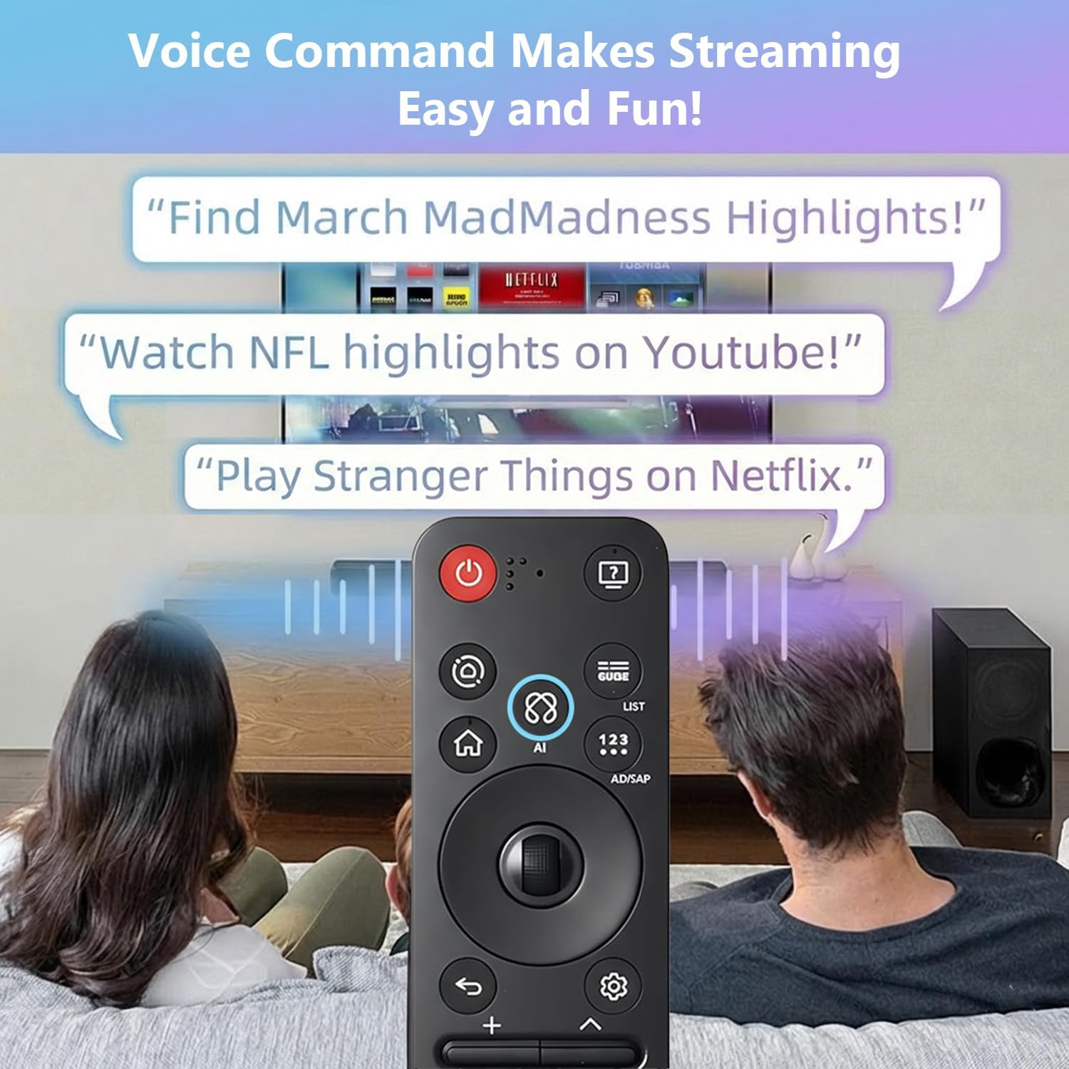【Voice and Pointer Function】 Equipped with both voice and pointer functions, allowing you to control your Smart TV effortlessly using voice commands and precise pointer navigation.