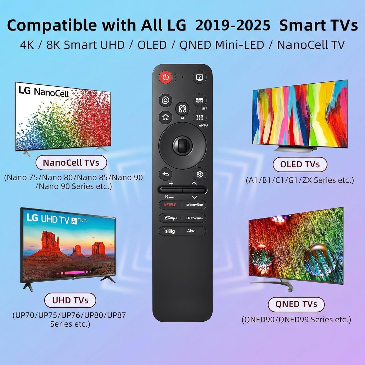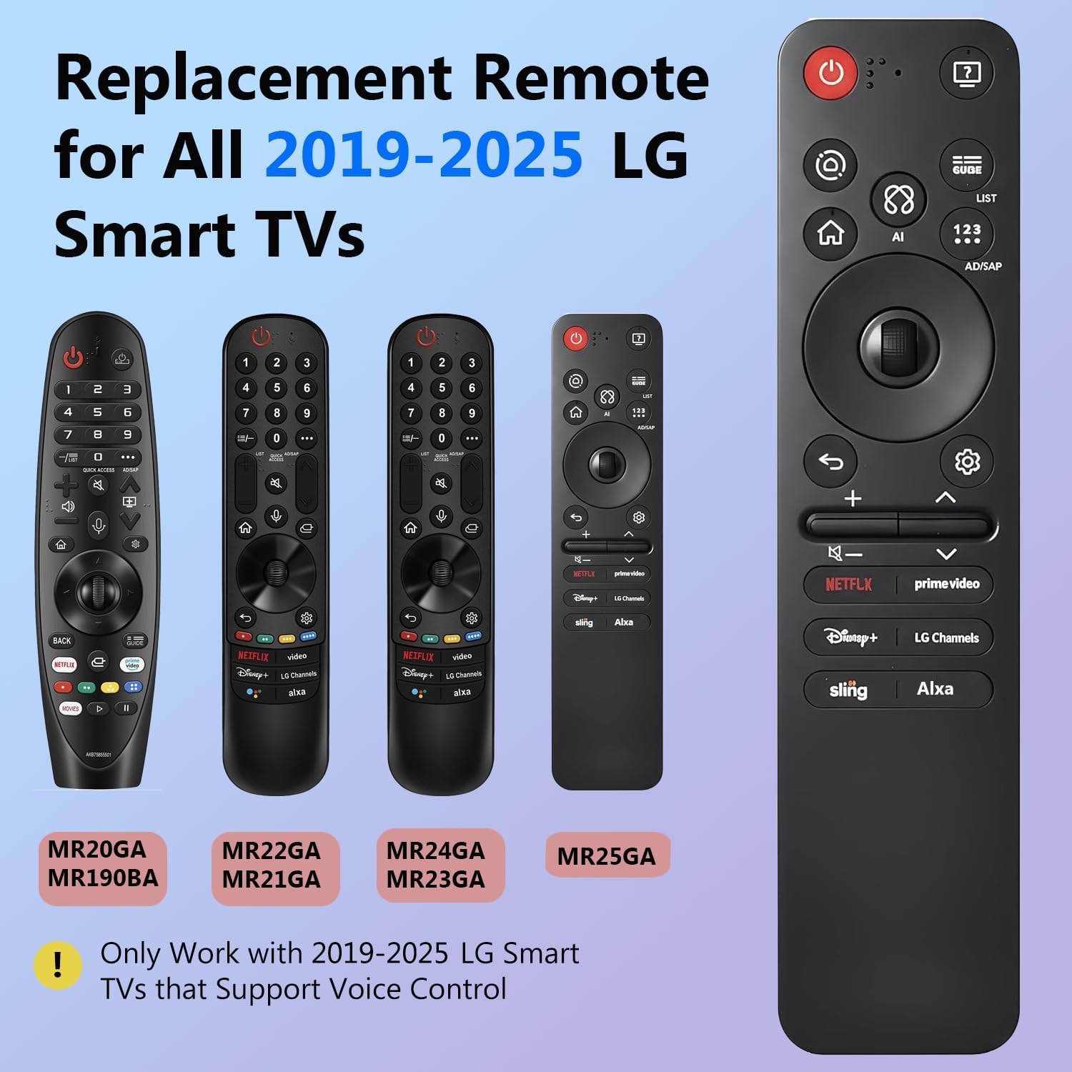 【Broad Compatibility】This new Magic Remote is designed for All 2019 – 2025 LG Smart TVs that support voice search! 【Notice】for TVs without voice control support or models released before 2019, the voice function may not work. It only works with LG TVs; Not for TV boxes or soundbars.