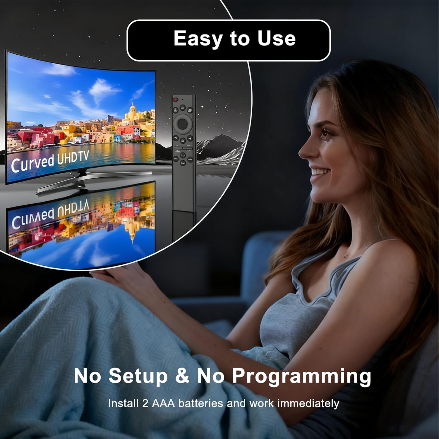 Easy to Use: Works instantly with 2 AAA batteries, no programming or setup needed for Samsung remote control for smart tv