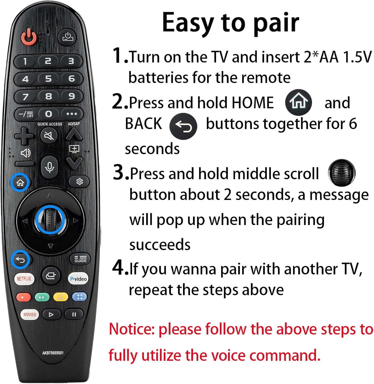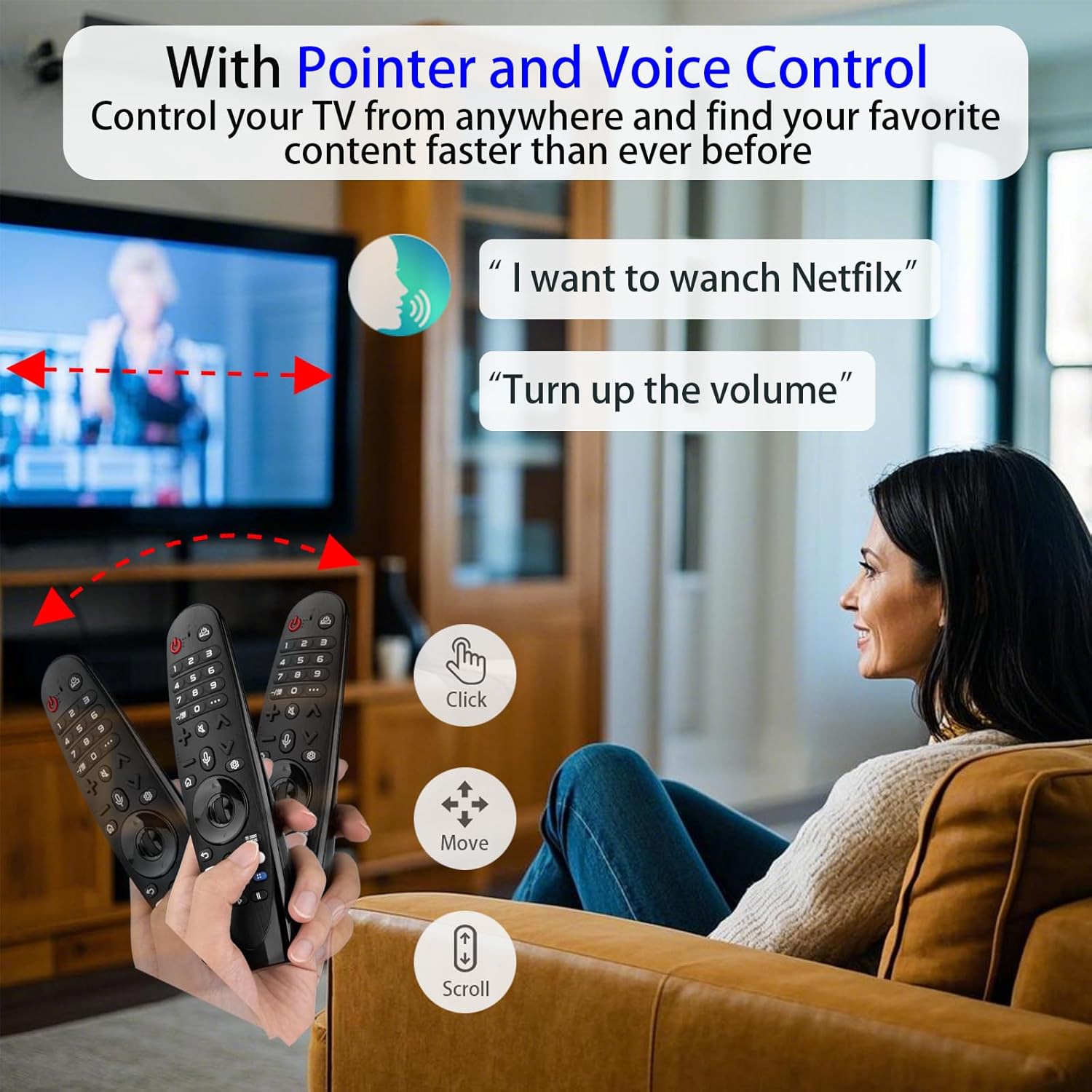Replacement Magic Remote for LG Smart TV Remote Control, with Voice and Pointer Function, Compatible with 2019-2025 LG OLED QNED UHD 4K 8K Smart TVs