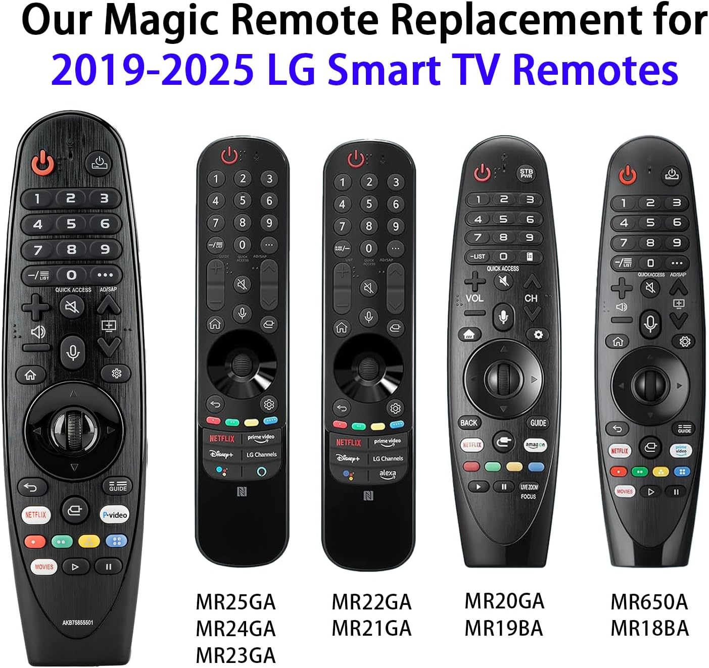 Compatibility: This magic voice remote control is compatible with all LG smart TVs manufactured between 2019 and 2025. It is a perfect substitute for LG smart remotes, such as MR25GA, MR24GA/GN, MR23GA/GN, MR22GA/GN, MR21GA, MR20GA, MR19BA, MR18BA, MR650A; AKB76039902, AKB75855501, AKB76036204, AKB76045002, AKB76043102 and AGF80220501