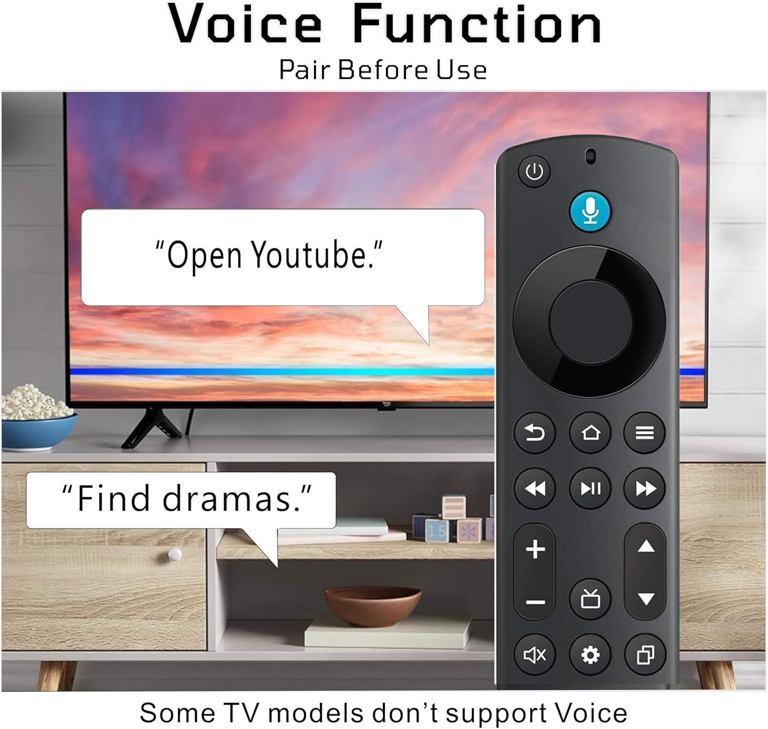 • Please Note: The voice control feature only works if your TV already supports it. This remote cannot enable voice commands on TVs that lack this built-in function.