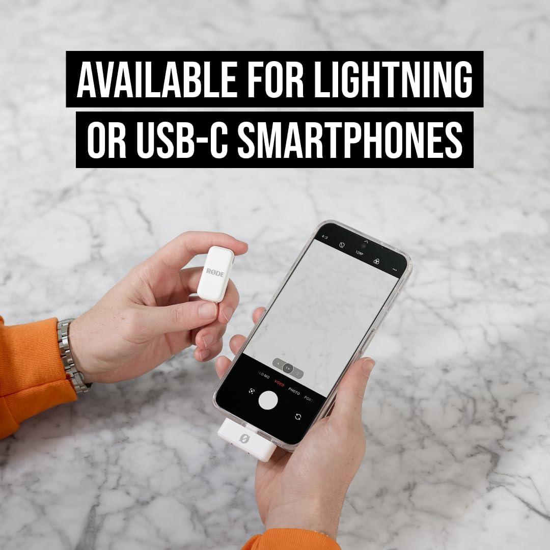 RØDE Wireless Micro – Compact Wireless Microphone, Two Mics with Charge Case for Smartphone Content Creation – Lightning, White