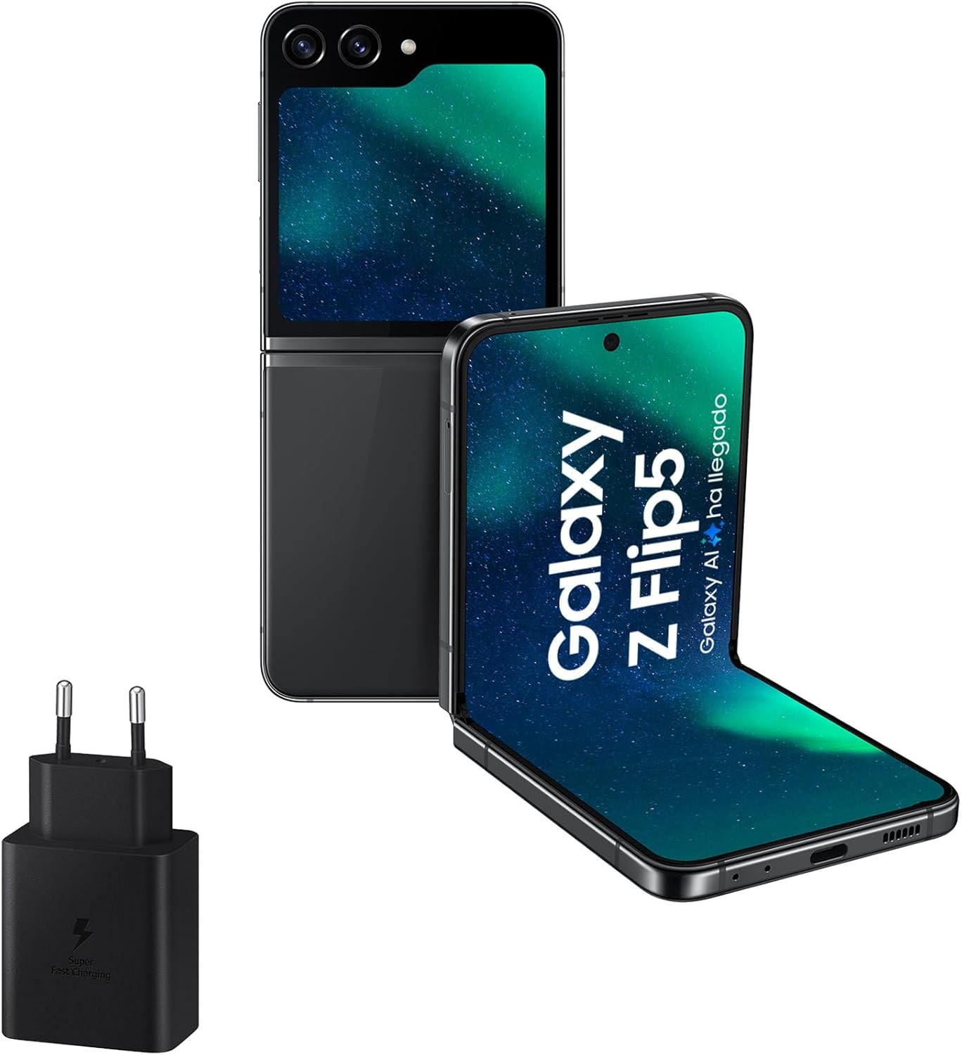 Everything from your AI smartphone: Edit your photos effortlessly, Get instant translation during a call, Transform your notes into a clear summary, Search and find like never before – Fits in any pocket: Enjoy the new enlarged 3.4″ exterior screen for a more fun and immersive experience. The Galaxy Z Flip5, with redesigned Flex hinge, can now fold firmly to fit in your pocket and in your pocket hands – Your camera for The ultimate selfie experience: Take advantage of Camera Controller on your Galaxy Watch6 for zooming selfies, or shoot directly from the Flex window – Customize your screen: Transform your smartphone’s exterior display into a reflection of your unique style and identity, Express yourself with the various display options featured in the Flex window – Optimal power and performance: Enjoy the high speed and performance of the new Snapdragon 8 Gen 2 processor for more graphics fluid, faster AI and improved energy efficiency – New Flex Mode panel: Interact to another level and elevate your experience in Flex Mode with more intuitive buttons at your fingertips – Longer battery life: Play up to 57 hours of audio and 20 hours of video, 3700 mAh battery (typical) effectively distributes charge so you can watch movies or play late, Turn on mode low consumption to keep to the fun – With 45W charger: Get the most complete pack with fast charging charger (45W) exclusive on Amazon