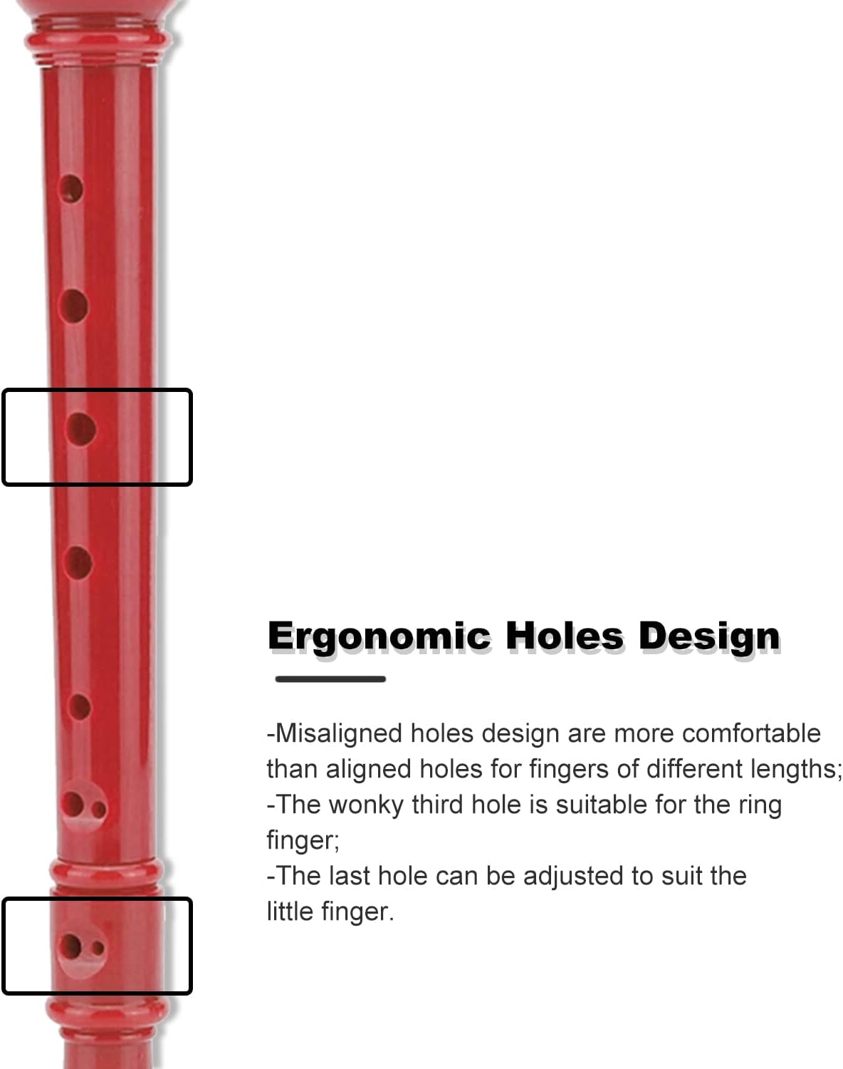 We designed this recorder with beginners in mind. Its lightweight build​ and comfortable thumb rest allow for extended practice without fatigue. The clear, numbered holes and ergonomic finger placement make learning simple and intuitive, helping students build a solid musical foundation quickly