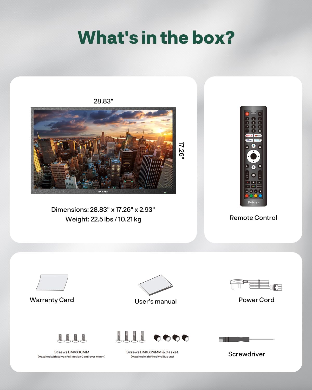 Be the first to review “SYLVOX 32-Inch Outdoor TV, Full Sun Outside TV, 1500 Nits Brightness, IP55 Waterproof, 1080P FHD, Google Smart TV OS, Voice Control Remote, WiFi 5G, for Patio, Deck, Terrace, Backyard (Pool SE, 2025)”