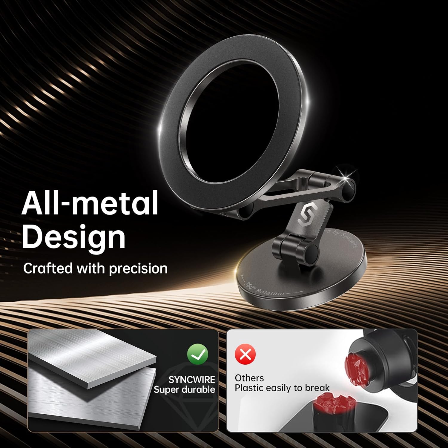 【Super Stable Design】The Syncwire MagSafe Car Phone Holder features 3 tightly fastened metal damping axles, which have undergone 12000 durability tests to prevent shaking and displacement during travel, providing optimal stability for your phone.