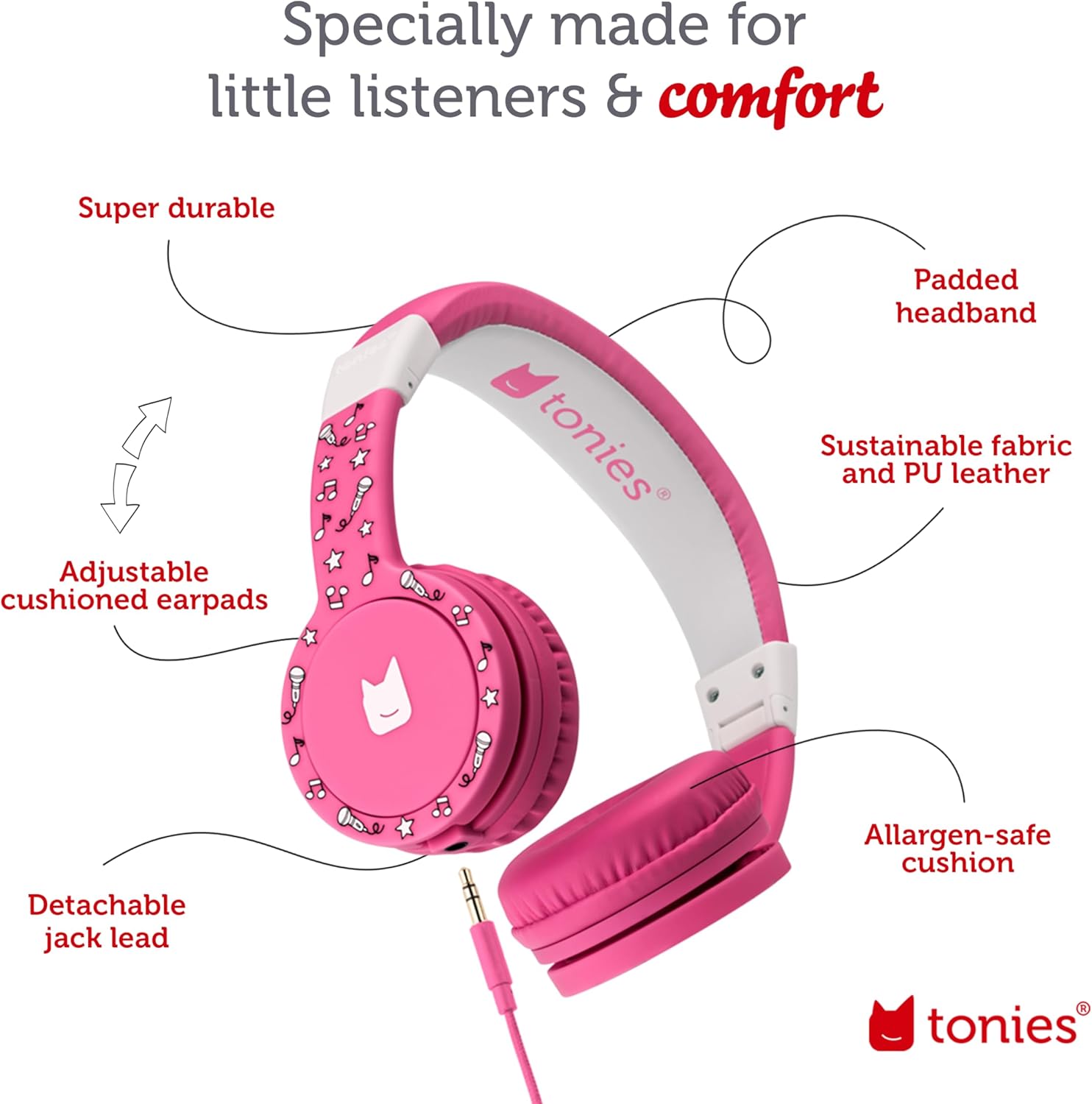 Volume Limiting – Protecting your ears is key which is why all Tonies headphones have a built in volume limiter to keep your kids safe!
