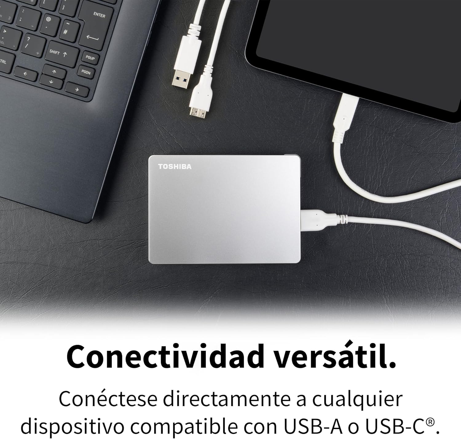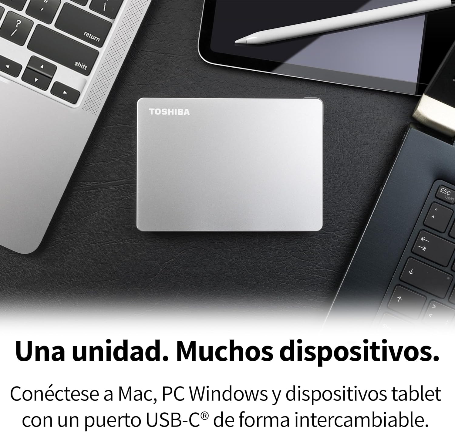 Stylish and Sleek: With its sleek silver finish, the Canvio Flex not only offers high-performance storage but also adds a touch of style to your workspace or home office. Its modern and sophisticated design will complement any décor, making it a great addition to your tech setup.