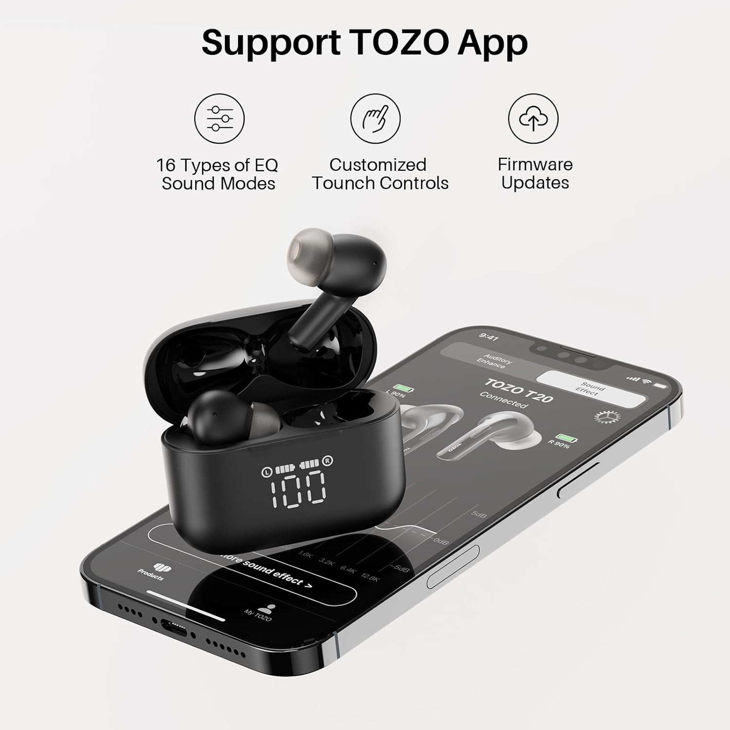 Be the first to review “TOZO T20 Wireless Earbuds Bluetooth Headphones 48.5 Hrs Playtime with LED Digital Display, IPX8 Waterproof, Dual Mic Call Noise Cancelling 10mm Broad Range Speakers, 2025 Version”