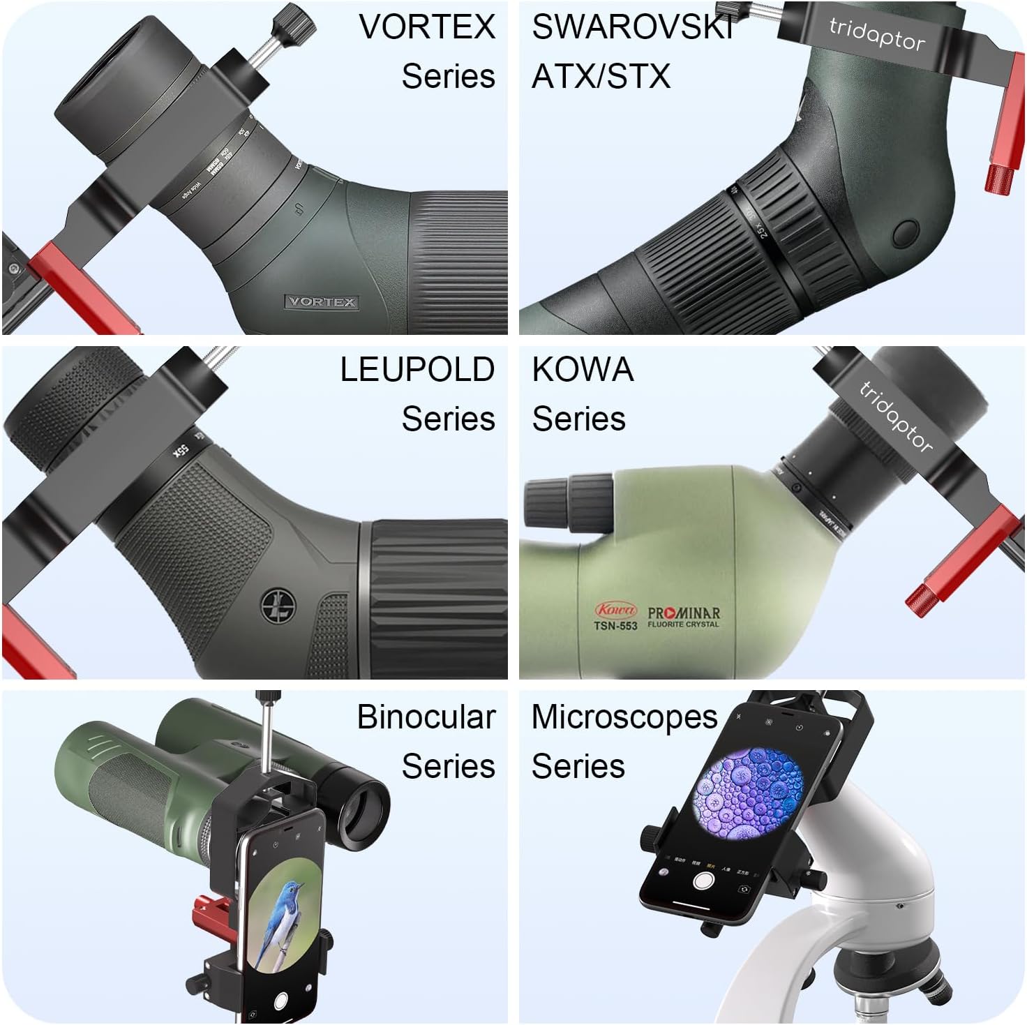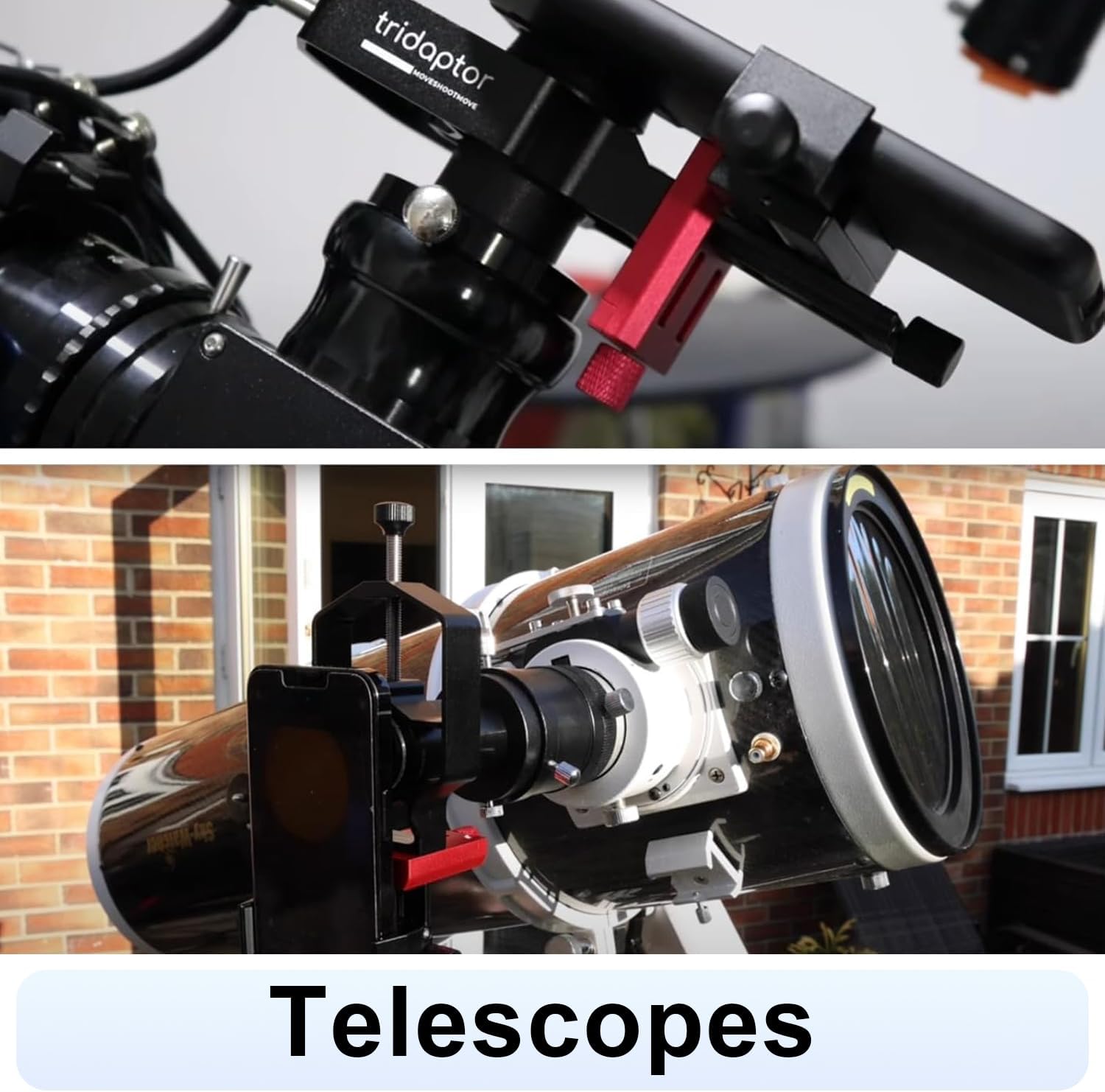 HANDS-FREE SHUTTER REMOTE CONTROL: The mobile phone telescope adapter kit includes a Bluetooth shutter release for shooting without touching the phone screen and thus prevents shaky photos. The 3-axis digiscoping adapter kit is sleek, compact and lightweight for any digiscoping adventure, making it a must-have gadget for astronomers, nature photographers, birdwatchers, travellers, researchers and more. Kindly note that ACCUVIEW (black) and TRIDAPTOR (partially red) are delivered randomly for now