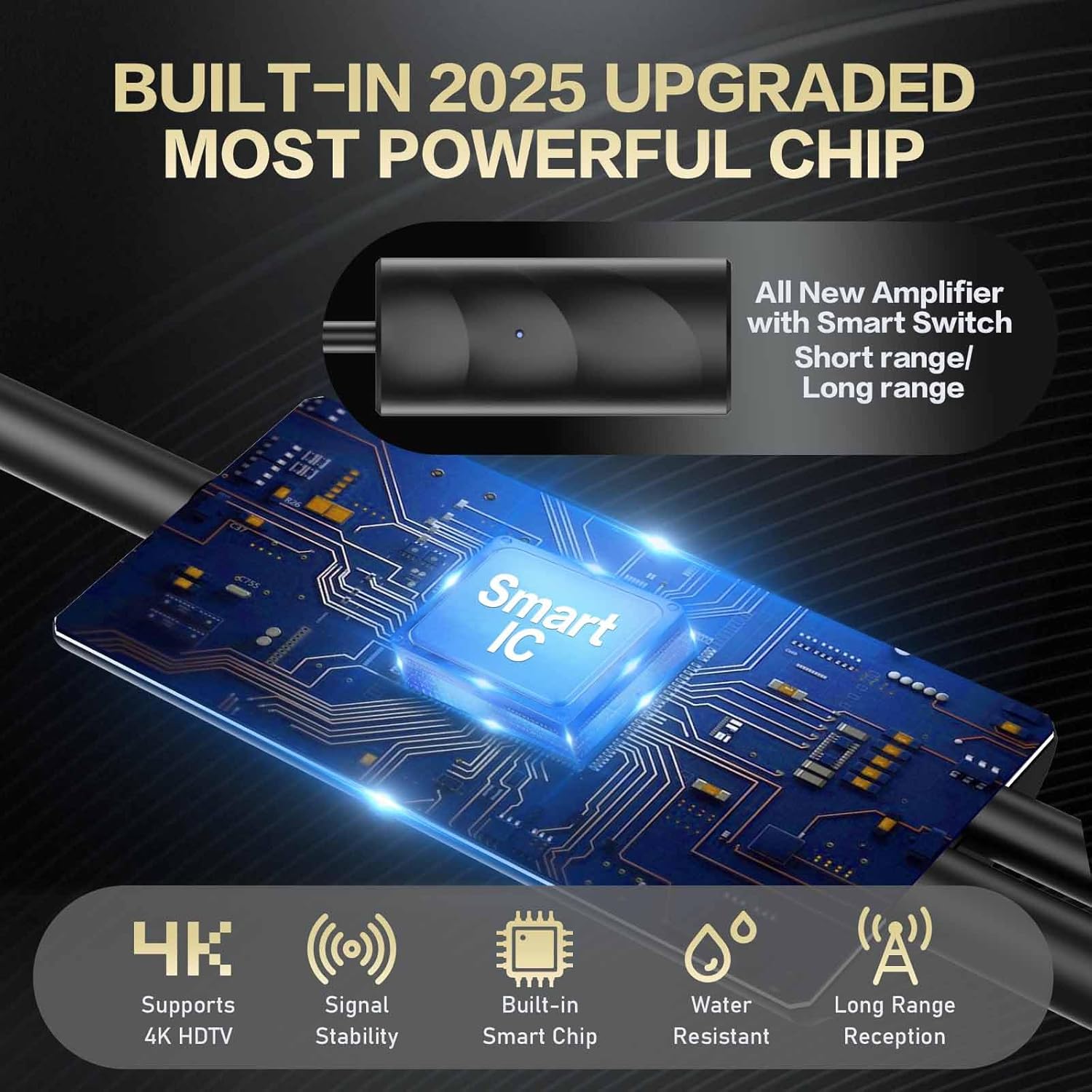 💪 𝐄𝐚𝐬𝐲 𝐈𝐧𝐬𝐭𝐚𝐥𝐥𝐚𝐭𝐢𝐨𝐧 𝐰𝐢𝐭𝐡 𝟑𝟑𝐅𝐓 𝐂𝐨𝐚𝐱𝐢𝐚𝐥 𝐂𝐚𝐛𝐥𝐞 :This TV antenna for smart TV comes with a 33-foot high-quality coaxial cable, making installation quick and simple. Just plug it into your TV, place the antenna in an optimal position, and scan for channels to start watching free local TV.