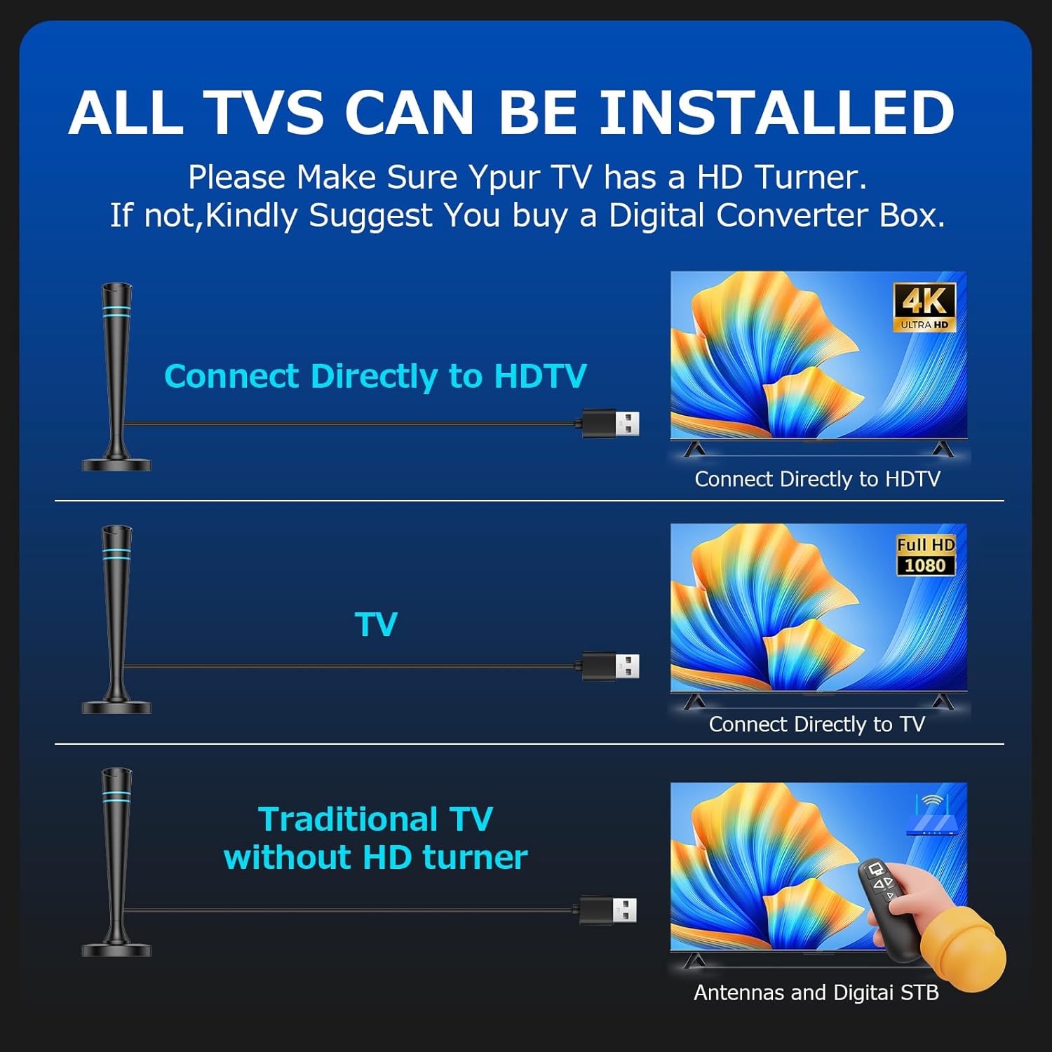 📺【𝐅𝐫𝐞𝐞 𝐇𝐃 𝐋𝐨𝐜𝐚𝐥 𝐂𝐡𝐚𝐧𝐧𝐞𝐥𝐬】Stop paying expensive cable bills! This digital TV antenna for smart TVs accesses hundreds of free local channels including ABC, CBS, NBC, PBS, FOX, Univision, and more.