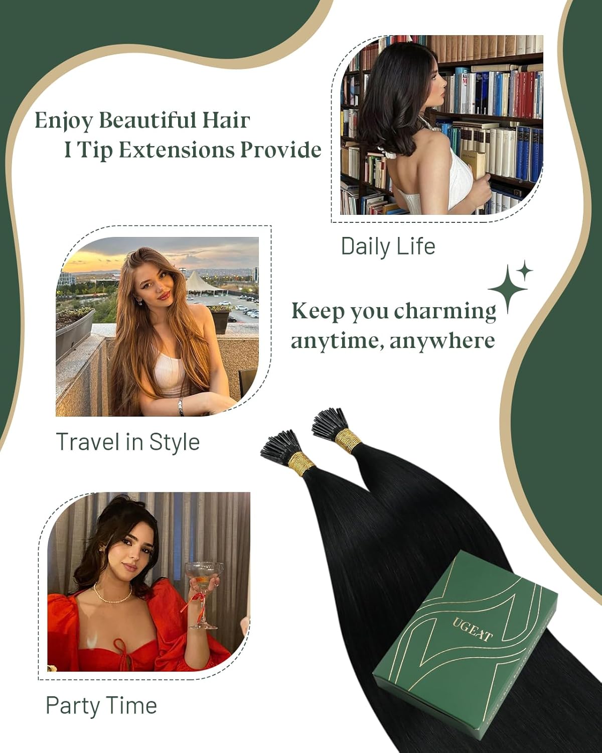 What is the Reason for Choosing UGEAT?UGEAT itip hair extensions are all finely crafted from real human hair; Compared to synthetic hair, UGEAT i tip hair extensions is more low-carbon and green in the entire production process; Contribute U’s strength to the ecology of all mankind