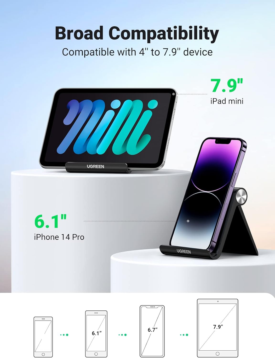 Anti-Slip & Anti-Scratches: UGREEN desk phone stand is equipped with upgraded silicone mats for enhanced desktop grip and from sliding and scratch