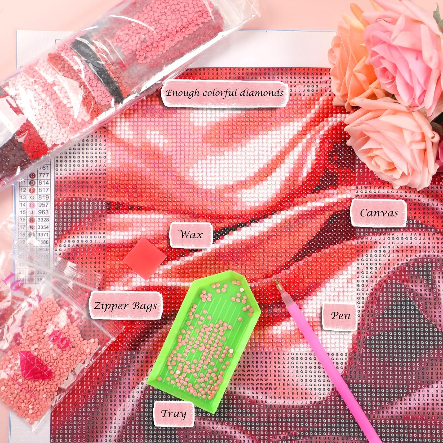【All-Inclusive Starter Kit】Our diamond painting kit has all tools needed for immediate crafting! Inside, you’ll get 1 high-adhesion canvas, 1 diamond-sorting tray, 1 wax pad, 1 diamond pen, and colorful diamond beads