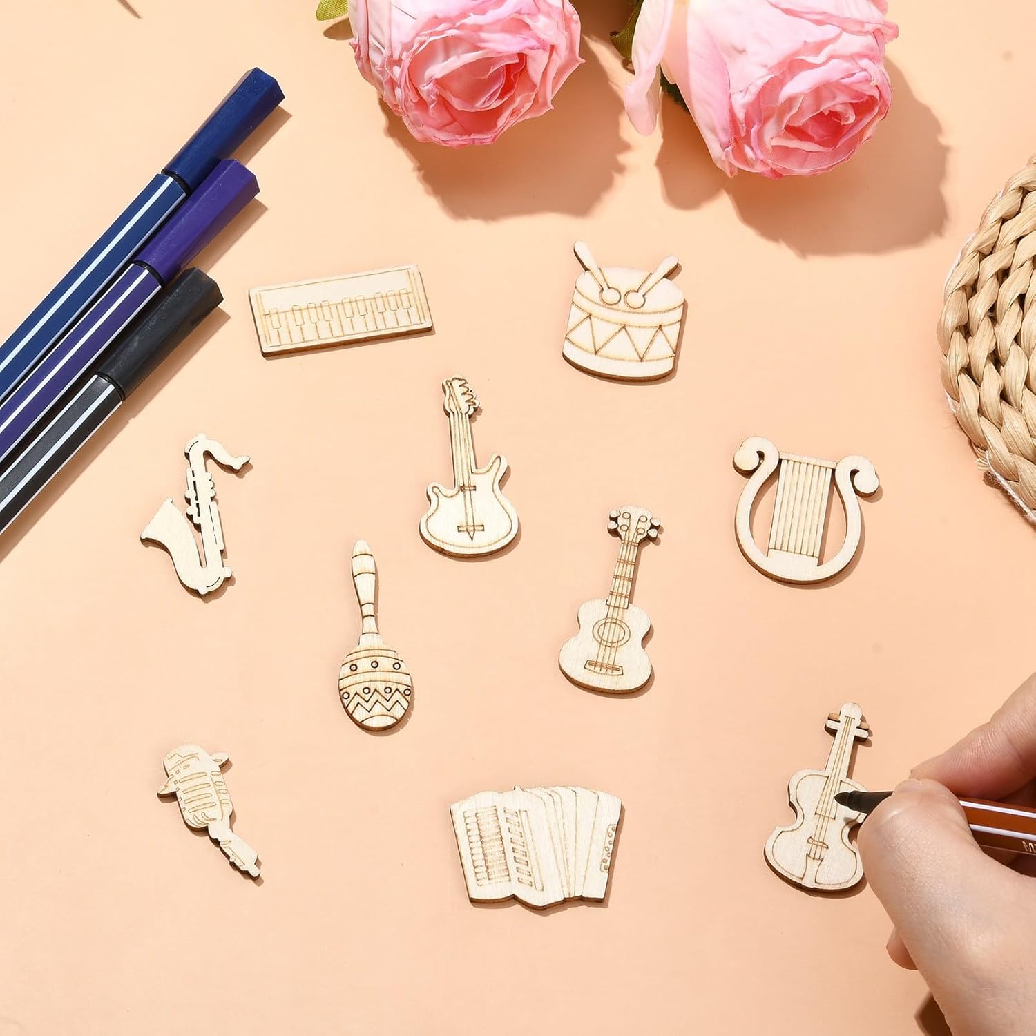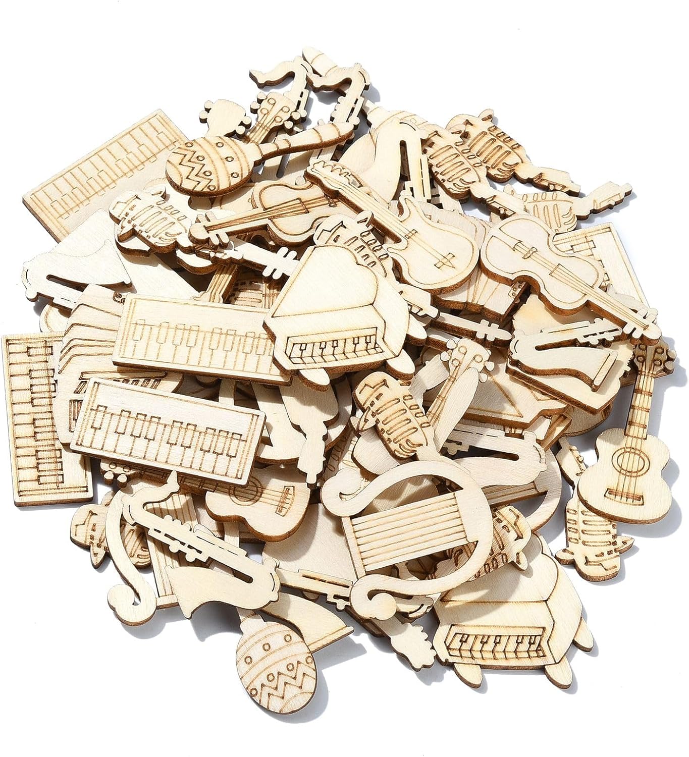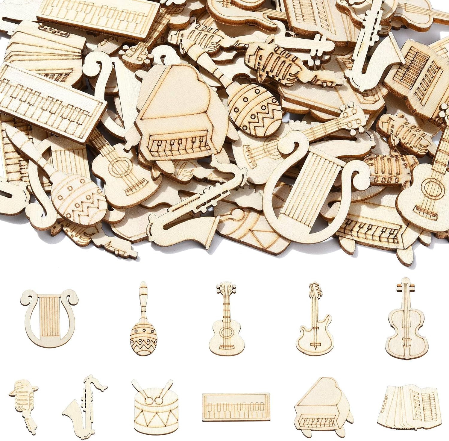 UR URLIFEHALL 200 Pcs Unfinished Musical Instruments Wood Cutouts Music Painting Wooden Shapes for DIY Crafts Party Concert Home Decor