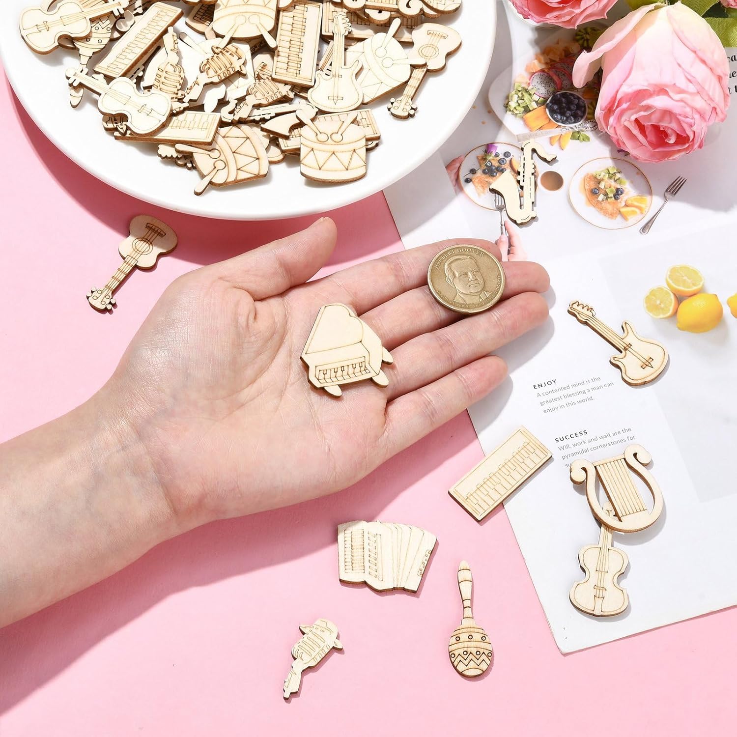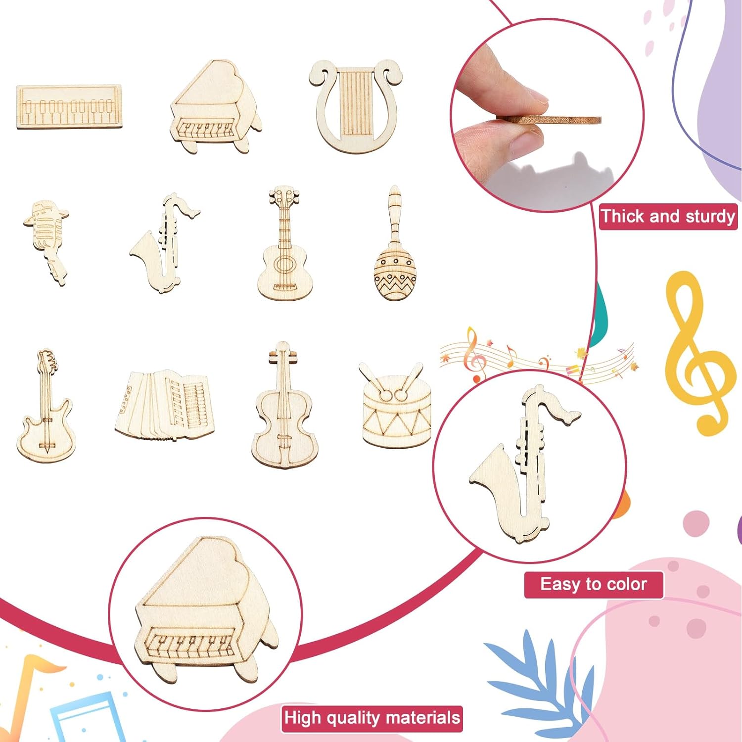 Natural and Sturdy Material: These music instruments wood cutouts are made of wood material, its size is for you to choose, not easy to break, uniformly coloured, all wooden craft shapes are lightweight and handy..