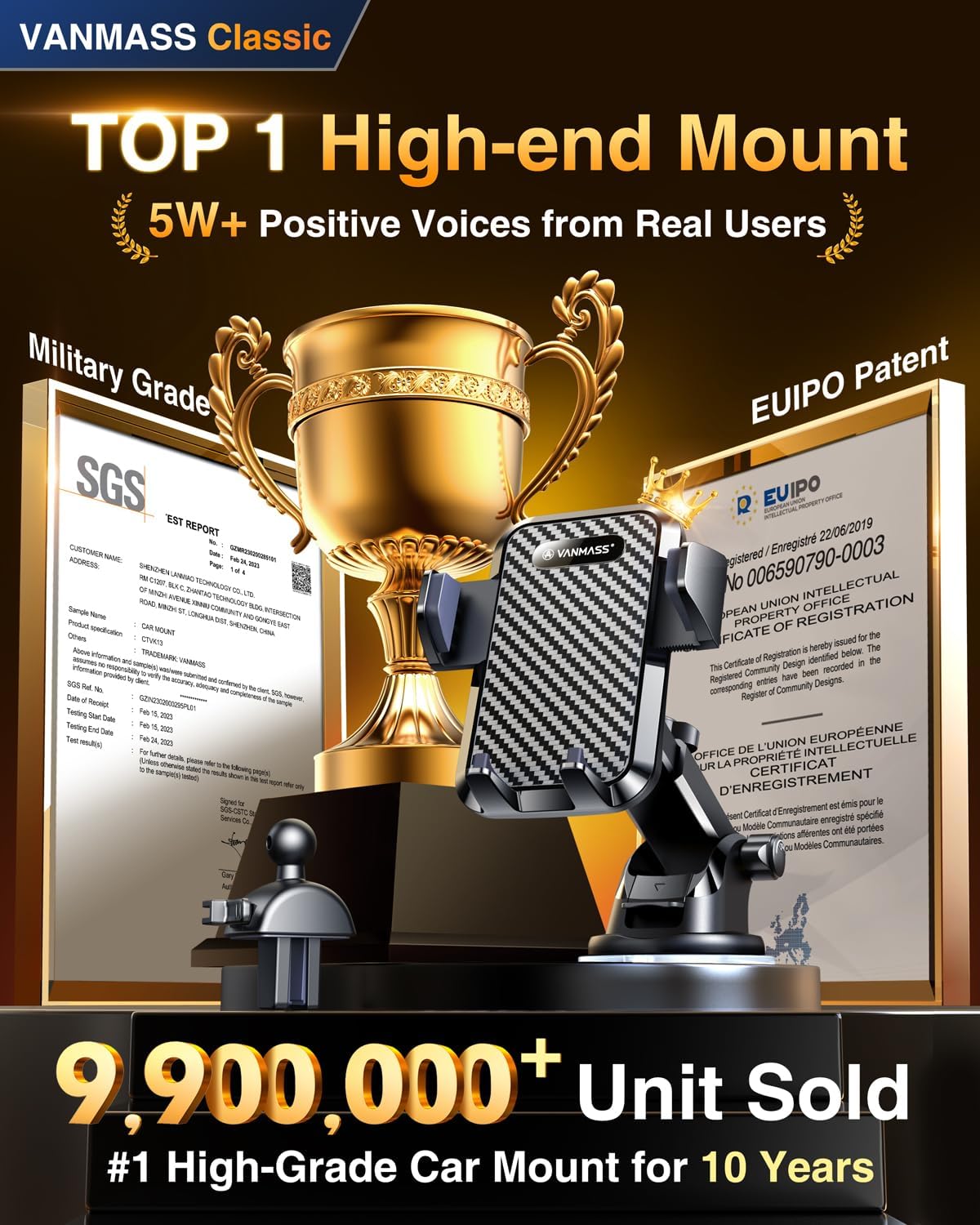 【𝐁𝐄𝐒𝐓 𝐂𝐡𝐨𝐢𝐜𝐞: 𝐇𝐢𝐠𝐡-𝐄𝐧𝐝 𝐂𝐚𝐫 𝐌𝐨𝐮𝐧𝐭 𝐓𝐫𝐮𝐬𝐭𝐞𝐝 𝐛𝐲 𝟗,𝟓𝟎𝟎,𝟎𝟎𝟎+𝐔𝐬𝐞𝐫𝐬 𝐨𝐯𝐞𝐫 𝟏𝟎 𝐘𝐞𝐚𝐫𝐬】2026 VANMASS car phone holder is certified by all authoritie5 (International Military-Grade Shockproof Cert No. GZMR230200285101, CP65,REACH,RoHS), based on Unique Grandmaster Design (EUIPO Patent No.006590790-0003), TOP Durable & Healthy Materials from 20,900 materials & Industry-Leading Safety Tests (Monthly 5,000+ open/close test; 100,000+km rugged road tests).